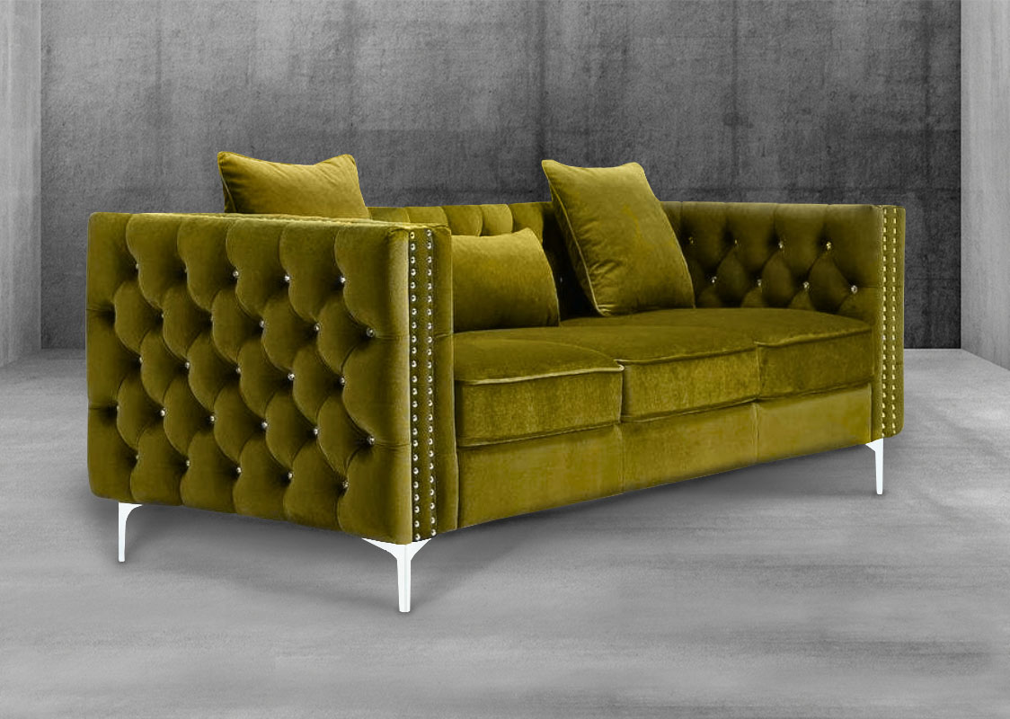 Прямой изящный нераскладной диван BORN на высоких металлических ножках  - идеальное решение для офиса, кафе, бара или ресторана. Материал обивки: велюр. Внутреннее наполнение мягких элементов дивана изготовлено из комбинации поролона различной плотности.