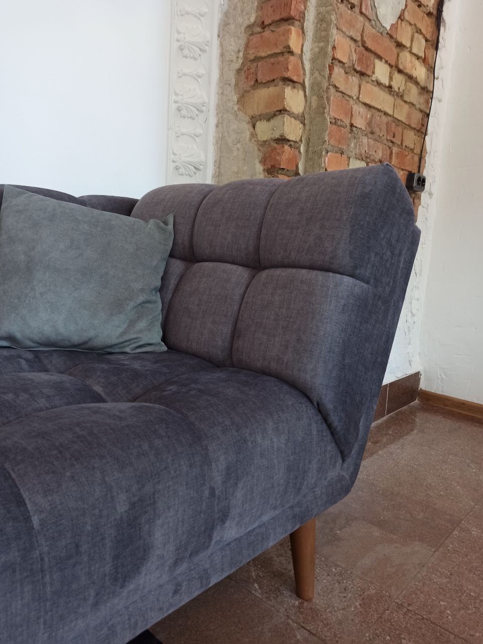 В основании каркаса дивана использован брус и фанера с резинотканой лентой. Материал ножек - массив. Оригинальность дизайну модели дивана FRANCE придает декоративная втяжка на мягких элементах.