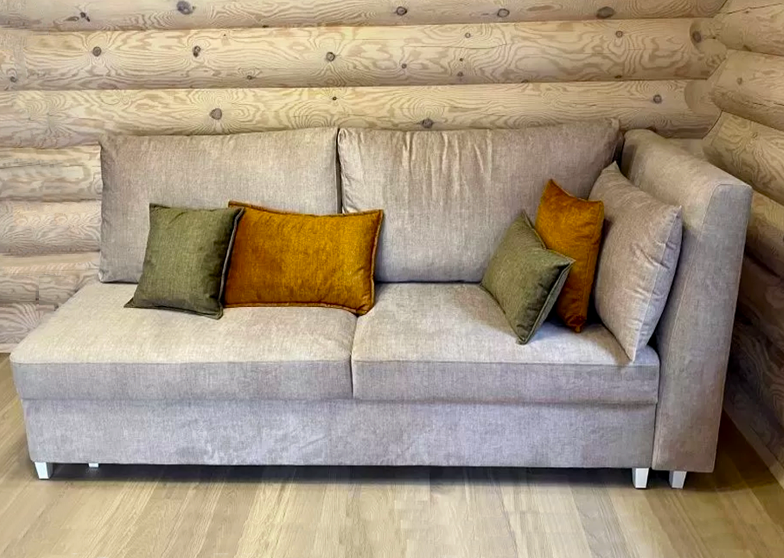 В основании каркаса дивана-тахты использован брус и фанера. Модель дивана представлена на нашем сайте в комплекте мягкой мебели для загородного дома.