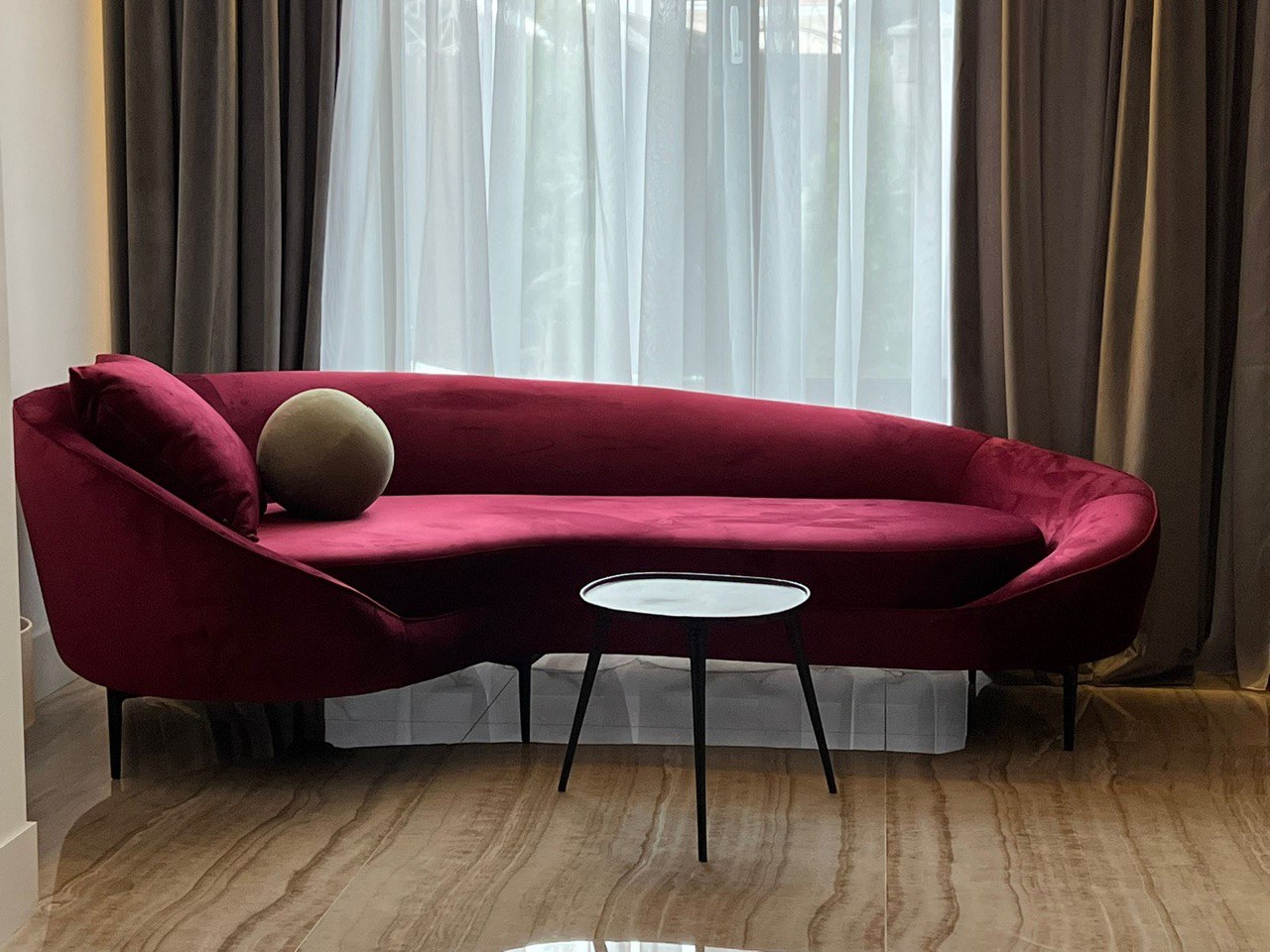 Материал обивки: велюр. Внутреннее наполнение мягких элементов дивана-тахты изготовлено из комбинации поролона разной плотности. Ножки дивана-тахты изготовлены из металла.