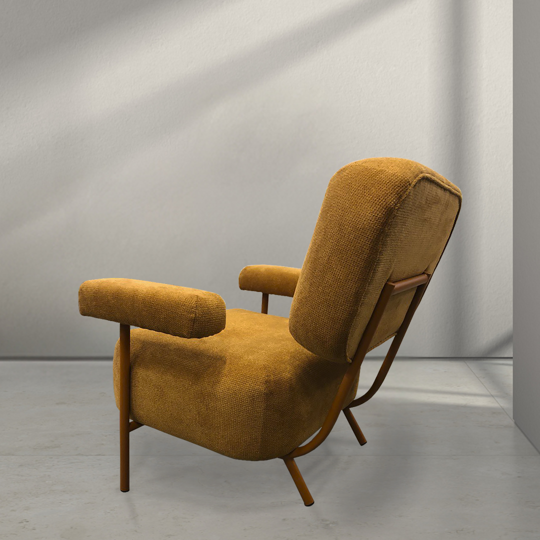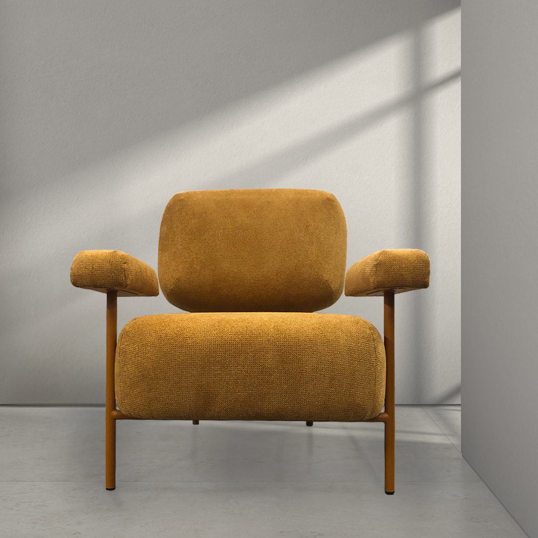 Модель кресла KAEF с низкой посадкой будет отлично смотреться в любом интерьере, будь то гостиная, терраса, офис, бар или ресторан. Материал обивки: рогожка (подбирается индивидуально). Внутреннее наполнение мягких элементов кресла изготовлено из комбинации поролона различной плотности. Каркас мягкого кресла изготовлен из бруса и фанеры, ножки - металл.