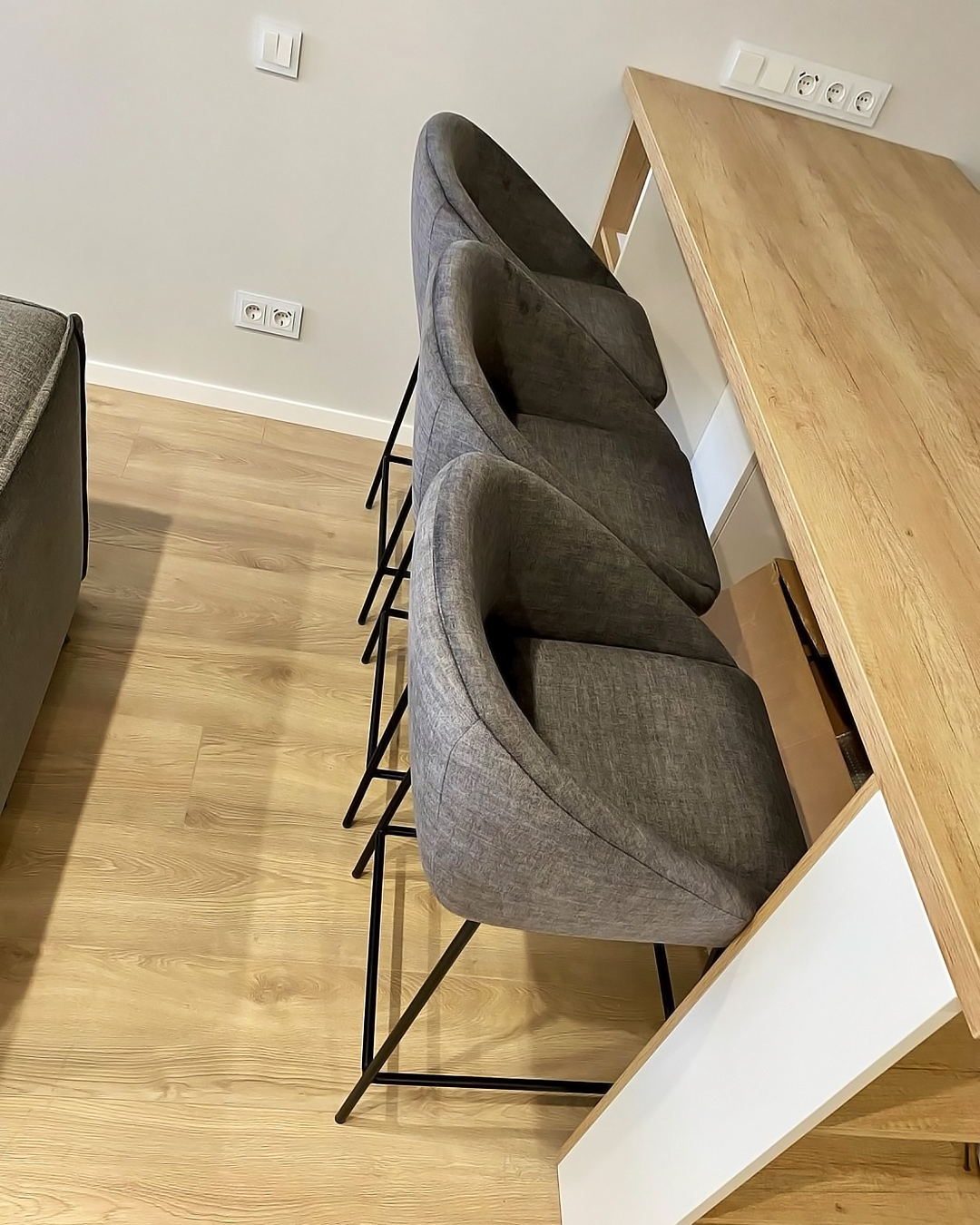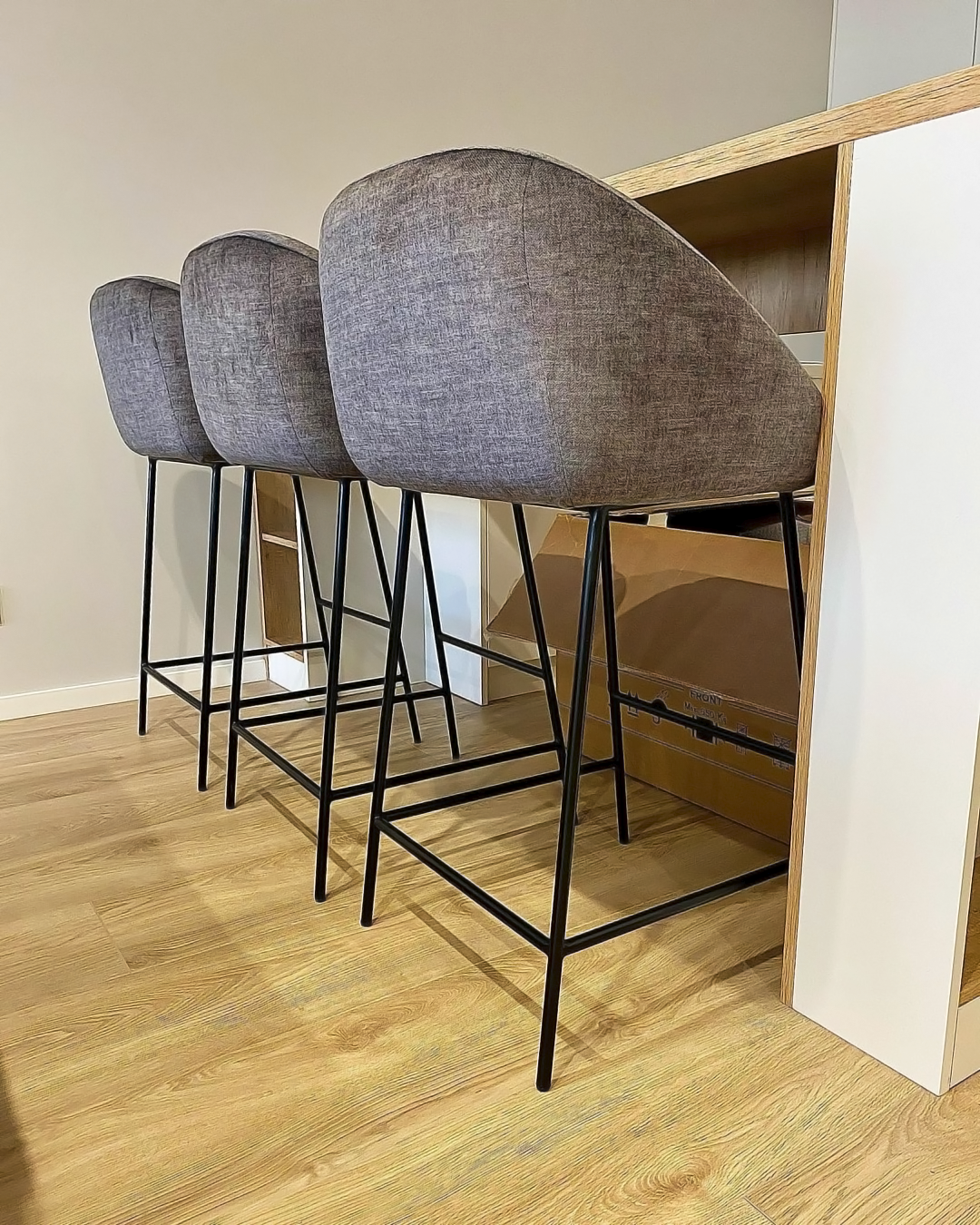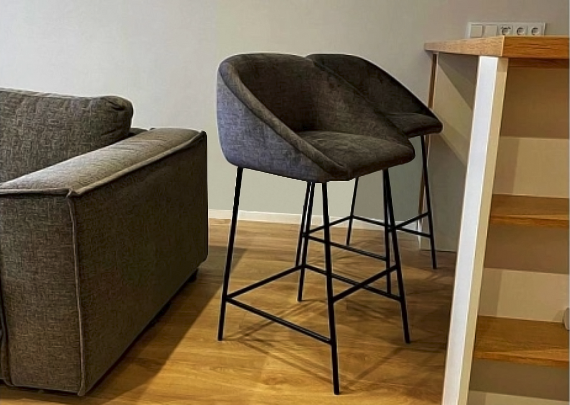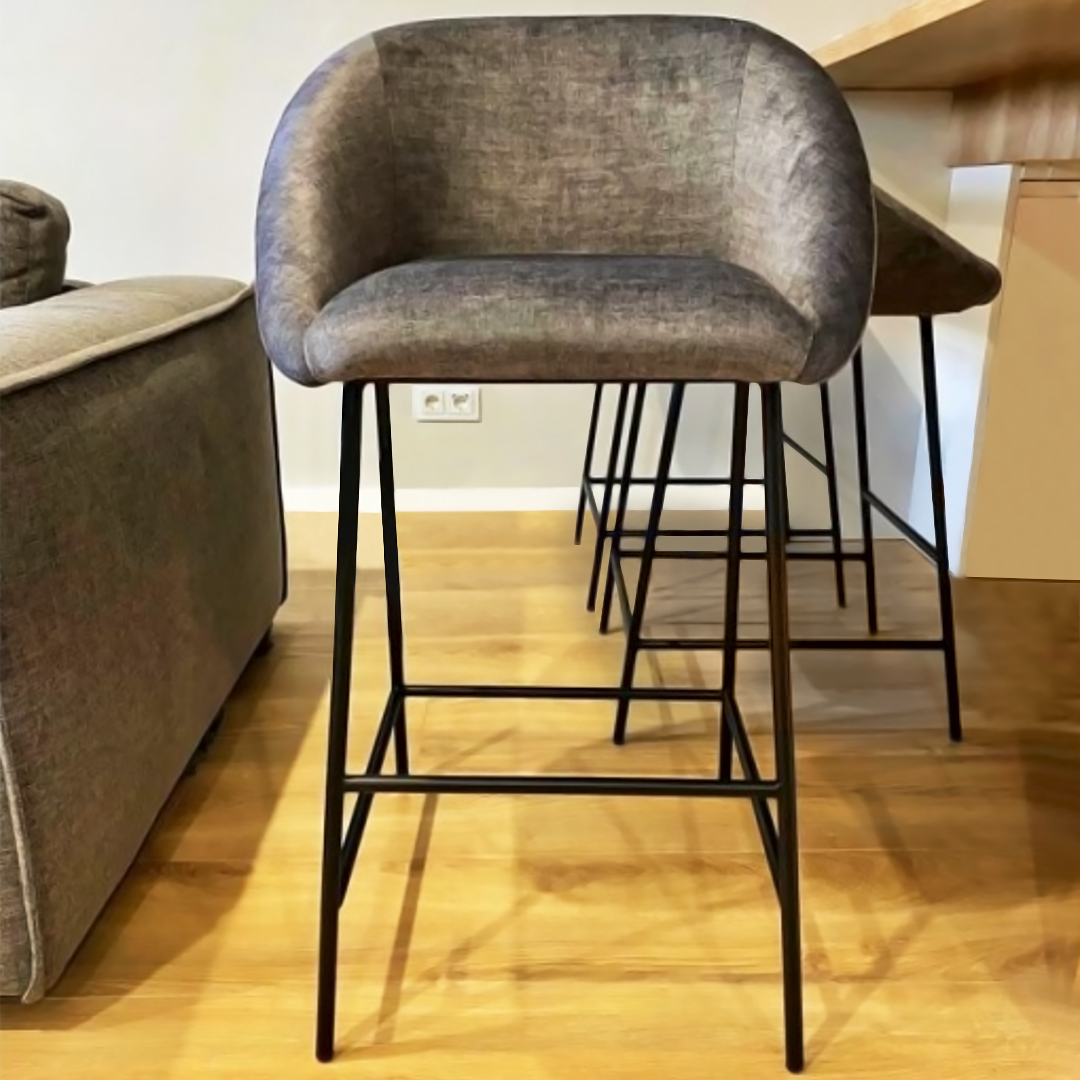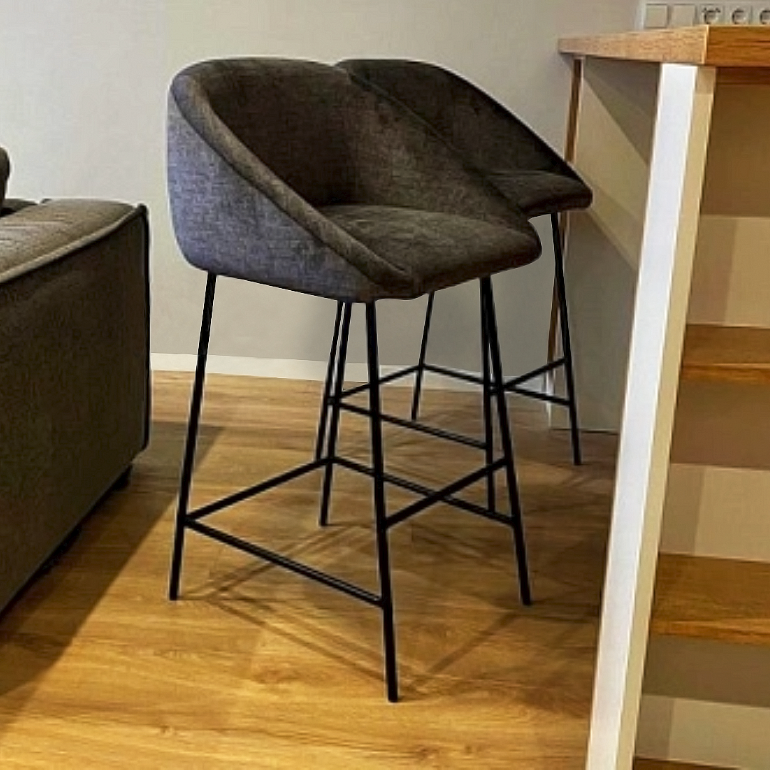 Барный / полубарный стул WAN с мягкой спинкой и подлокотниками на металлическом каркасе, станет идеальным решением для интерьера Вашего дома, кафе, бара или ресторана. Ножки барного стула выполнены из тонкой стали с полимерным покрытием.  Несмотря на визуальную легкость и значительную высоту посадки (полубарный стул - 62 см, барный стул - 76 см), конструктивное исполнение каркаса стула позволяет ему выдерживать нагрузку до 150 кг и гарантирует хорошую устойчивость. Мягкое сиденье и спинка стула обтянуты высококачественной износостойкой тканью и изготовлены из плотного поролона толщиной 5 см и 3 см.