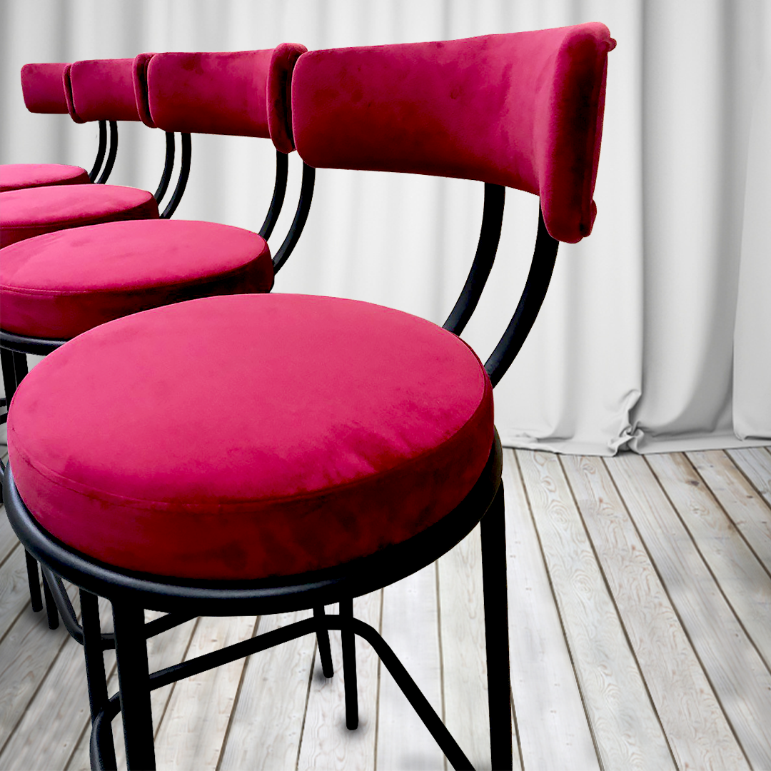 Барный / полубарный стул MASLEY с мягкой спинкой на металлическом каркасе, станет идеальным решением для интерьера Вашего дома, кафе, бара или ресторана. Ножки барного стула выполнены из тонкой стали с полимерным покрытием.  Несмотря на визуальную легкость и значительную высоту посадки (полубарный стул - 64 см, барный стул - 78 см), конструктивное исполнение каркаса стула позволяет ему выдерживать нагрузку до 180 кг и гарантирует хорошую устойчивость. Мягкое сиденье и спинка стула обтянуты высококачественной износостойкой тканью и изготовлены из плотного поролона толщиной 5 см и 2 см.