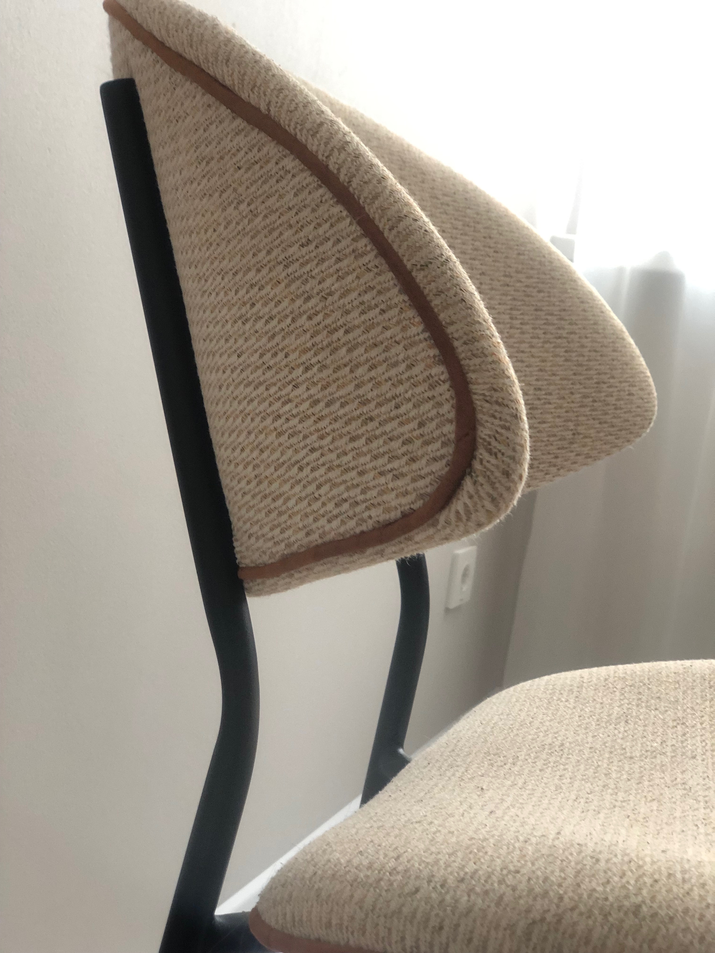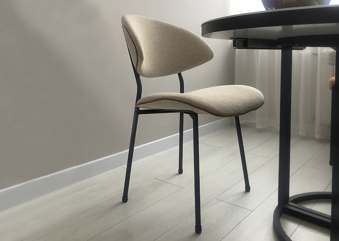 Обеденный мягкий стул Donald на металлическом каркасе.  Материал обивки - рогожка. Внутреннее наполнение мягких элементов стула изготовлено из двух слоев поролона различной плотности и мягкости. С Стул Donald идеально дополнит любую обеденную группу на террасе, кухне, в кафе или ресторане. По желанию заказчика, размер изделия, цвет и материал обивки можно изменить.