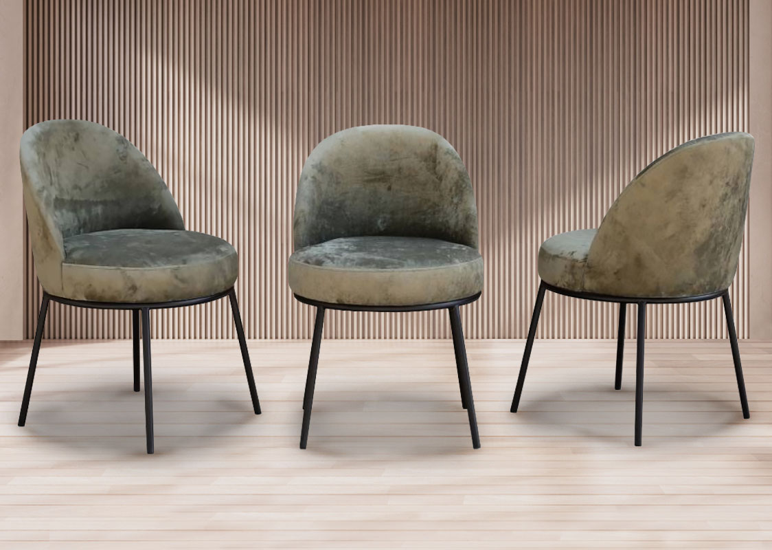 Обеденный стул KROLL с мягкой спинкой на металлическом каркасе.  Материал обивки - велюр. Внутреннее наполнение мягких элементов стула изготовлено из двух слоев поролона различной плотности и мягкости. Стул KROLL идеально дополнит любую обеденную группу на террасе, кухне, в кафе или ресторане. По желанию заказчика, размер изделия, цвет и материал обивки можно изменить.