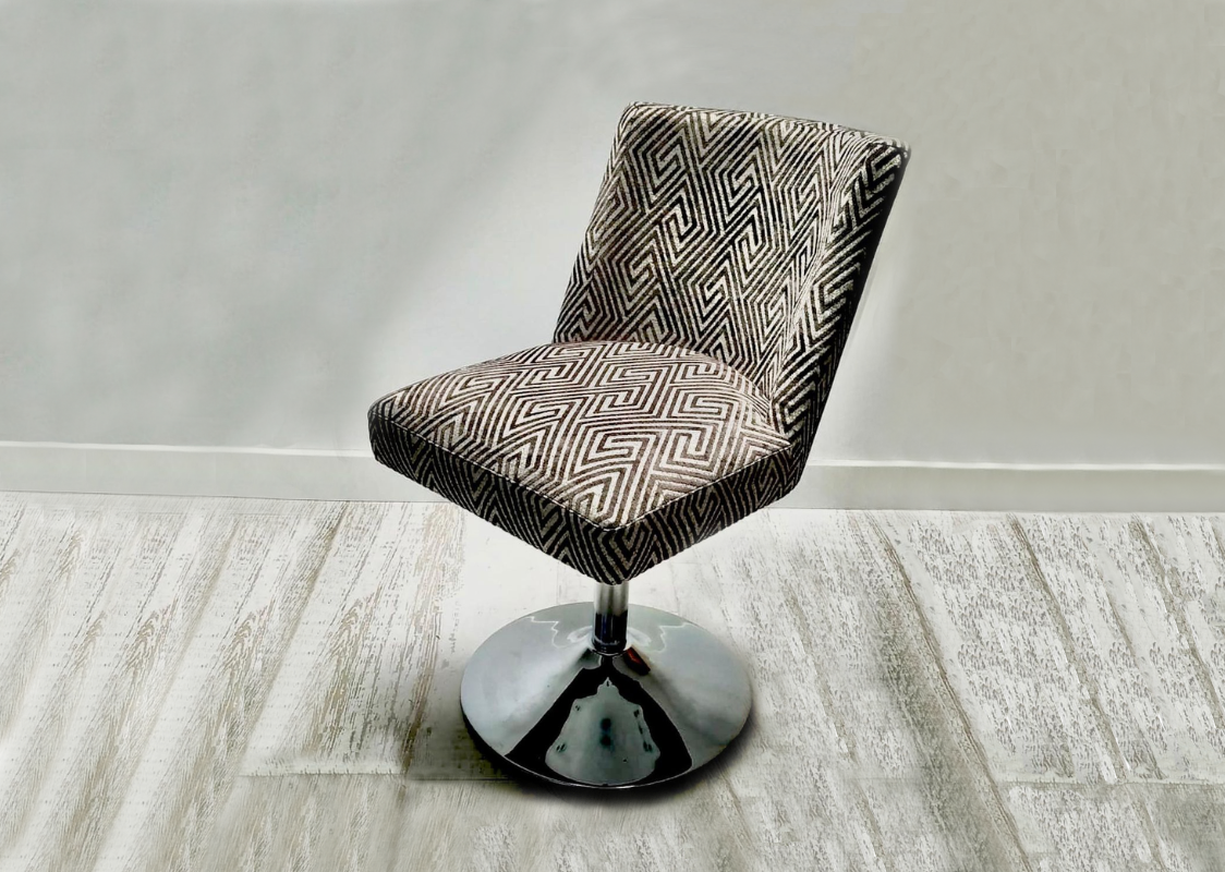 Элегантный и  локоничный обеденный мягкий стул VERTU на поворотном основании идеально дополнит любую обеденную группу на террасе, кухне, в кафе офисе или ресторане. Материал обивки - рогожка. Внутреннее наполнение мягких элементов стула изготовлено из двух слоев поролона различной плотности и мягкости. По желанию заказчика, размер изделия, цвет и материал обивки можно изменить.