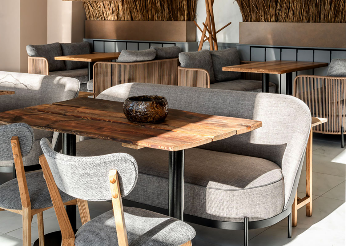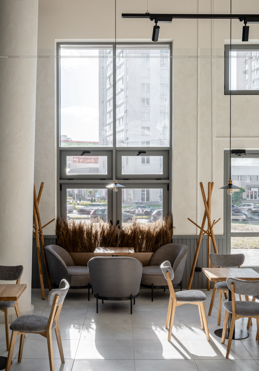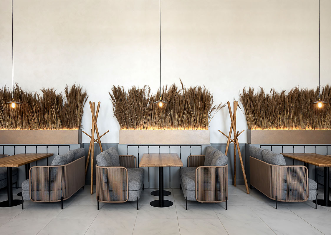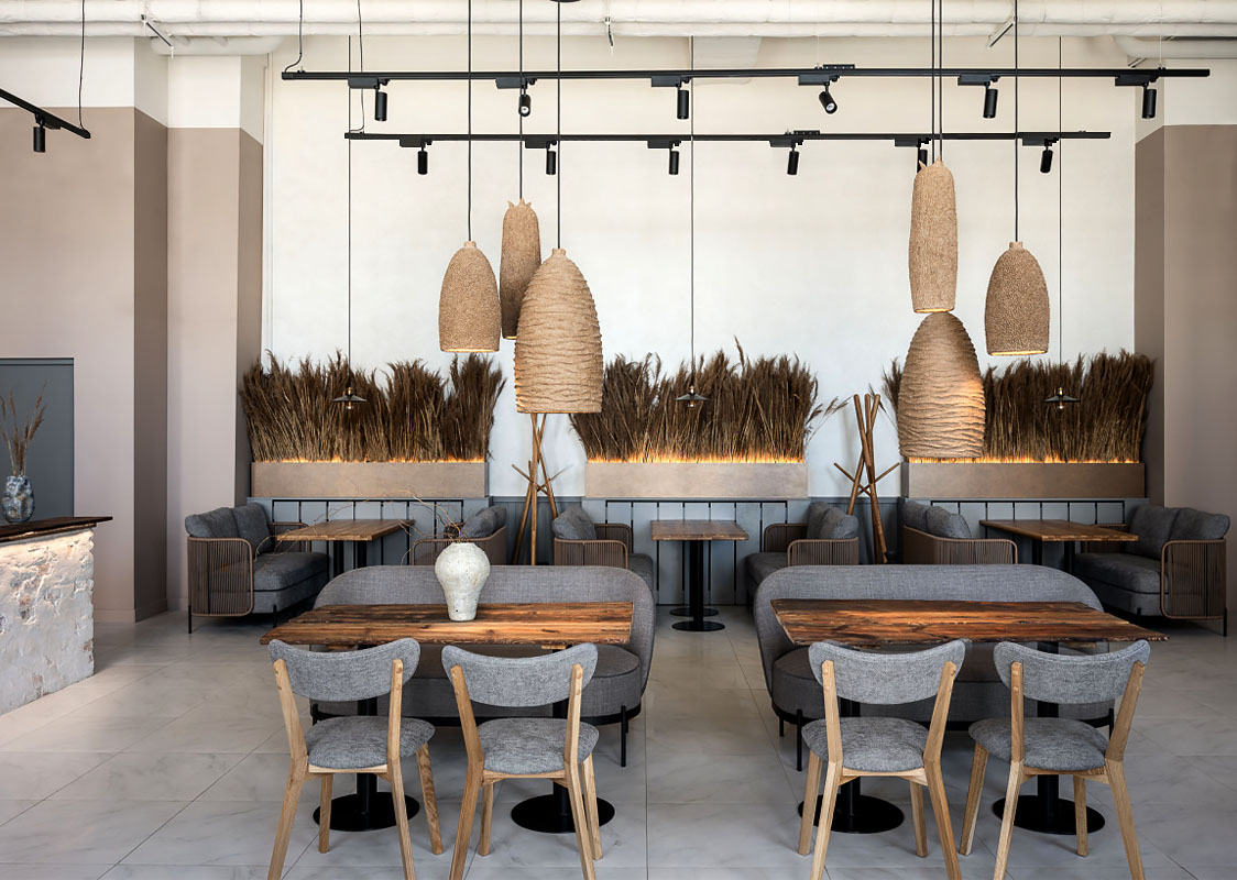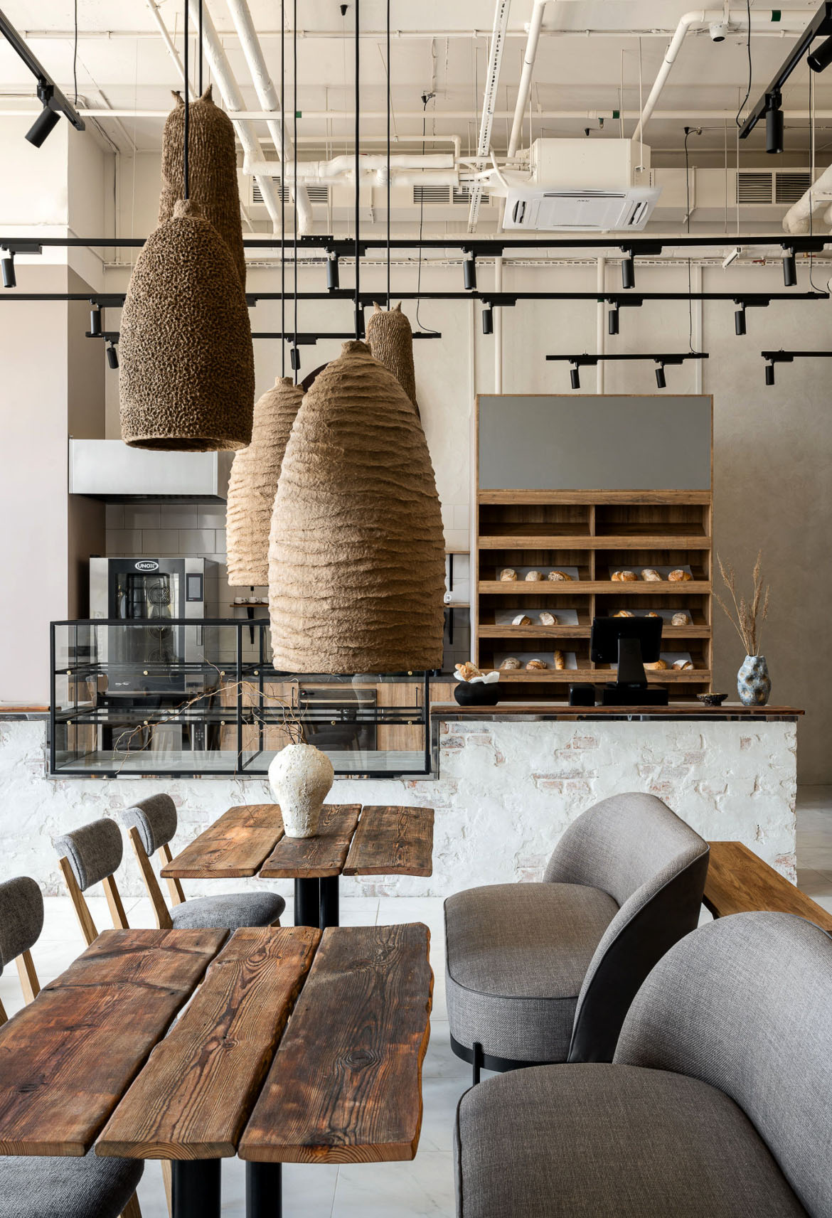 Коллекция мебели "BRON" реализована в интерьере пекарни Лепшы хлеб в Минске и разработана совместно с талантливым дизайнером Елена Рудая. В проекте представлены модели плетеных диванов из синтетического шнура CELL, мягкие диваны и кресла BRON. Мягкие элементы, с подушками на молнии, изготовлены из водоотталкивающей и экологичной ткани. Материал обивки: рогожка. Внутреннее наполнение мягких элементов мебели изготовлено из комбинации блока независимых пружин и латексированного поролона. В основании каркаса использован брус и фанера с резинотканой лентой.