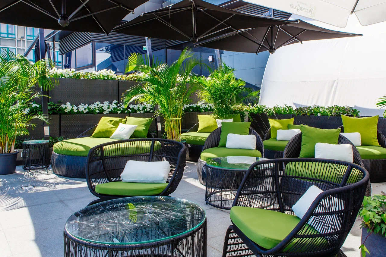 Проект реализован командой Филини Мебель на террасе ресторана Ember в отеле DoubleTree by Hilton в Минске. В интерьере террасы собраны различные комбинации плетеной мебели из искусственного ротанга и синтетического шнура от Белорусского производителя. Мягкие элементы входят в комплект. Мебель HoReCa от Филини Мебель - идеальное решение для террасы бара кафе или ресторана.