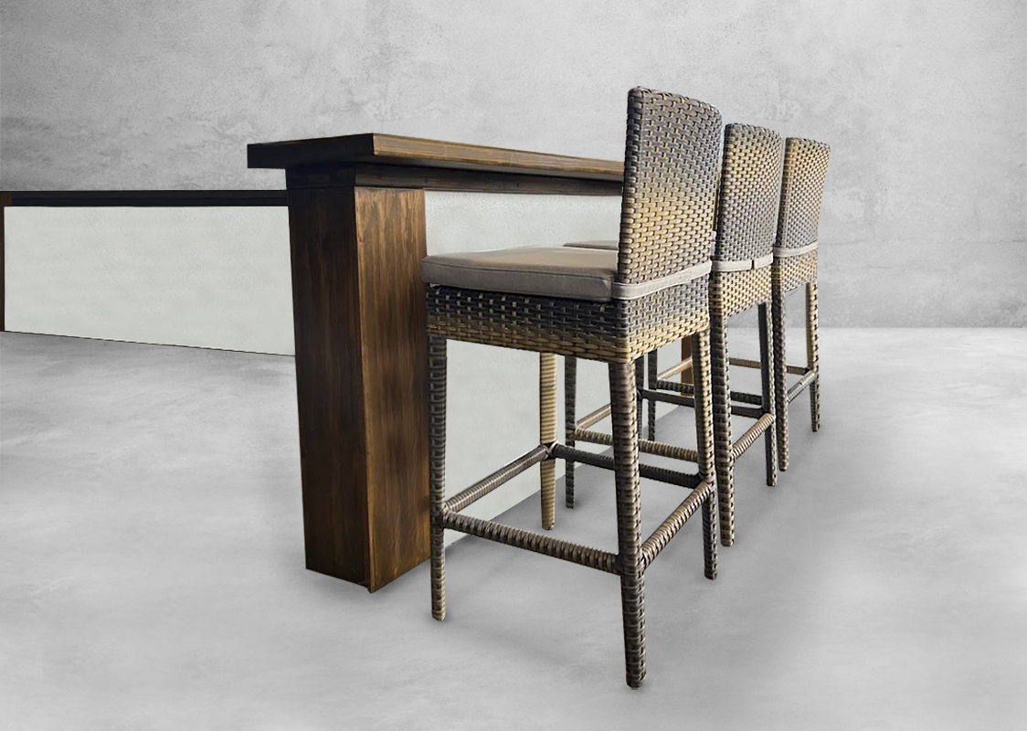 Барный комплект садовой мебели MODERN на 4 персоны включает в себя 4 барных стула 51х47х114 см и барный стол 130х61х110 см. Идеальный вариант для террасы, беседки, веранды, а так же для ресторана бара или кафе. Мягкие элементы входят в комплект. Материал плетения - искусственный ротанг/синтетический шнур. К заказу принимаем любую комплектацию и размер. Возможно изменить цвет, текстуру и материал плетения.