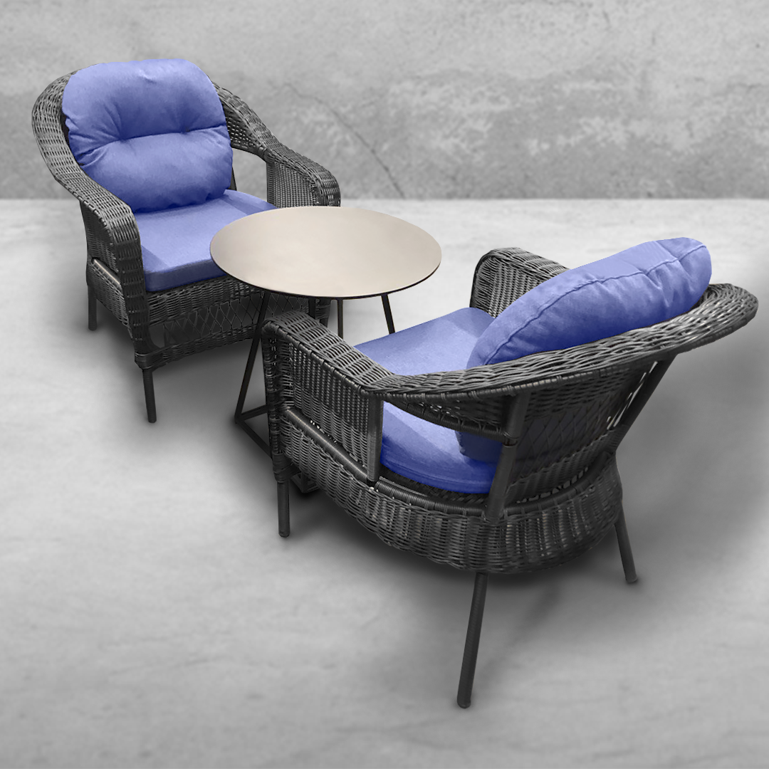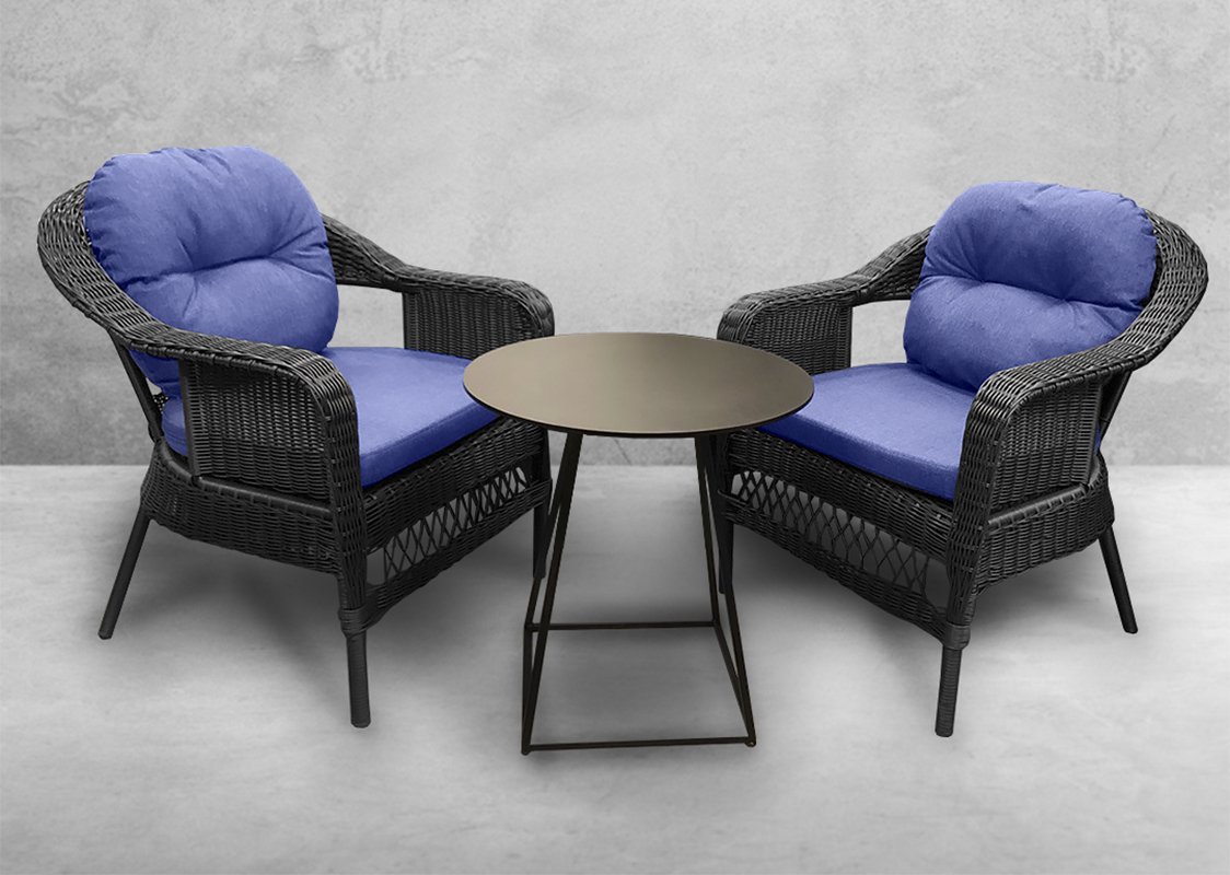 Комплект GRODY Coff на 2 персоны включает в себя 2 кресла 76х80х86 см плетеных из искусственного ротанга и круглый кофейный металлический столик d 60х60 см со стеклянной столешницей. Комплект уличной мебели GRODy Coff идеально подойдет на террасу, беседку, веранду или лаунж зону, а так же в ресторан или кафе. Мягкие элементы входят в комплект. К заказу принимаем любую комплектацию и размер. Возможно изменить цвет, текстуру искусственного ротанга и материал плетения.