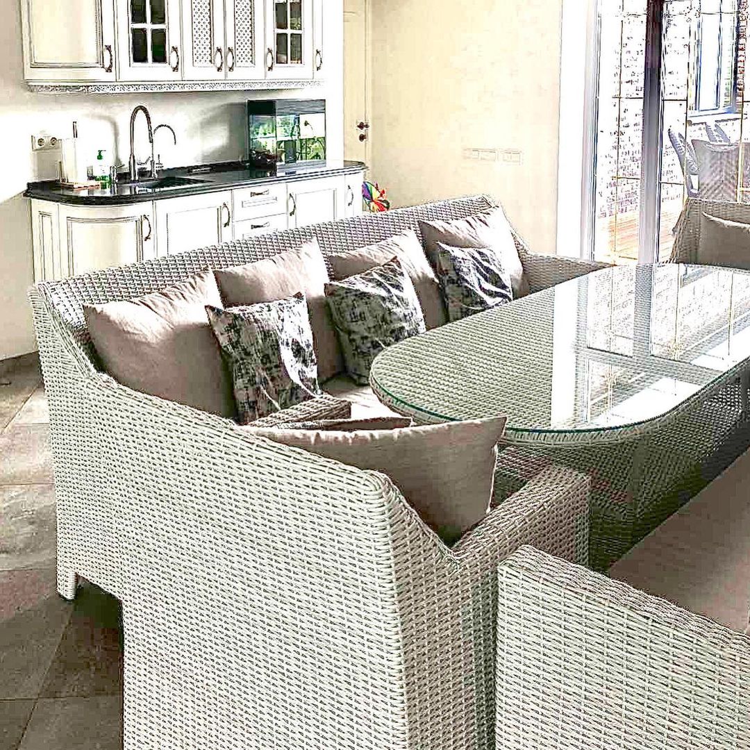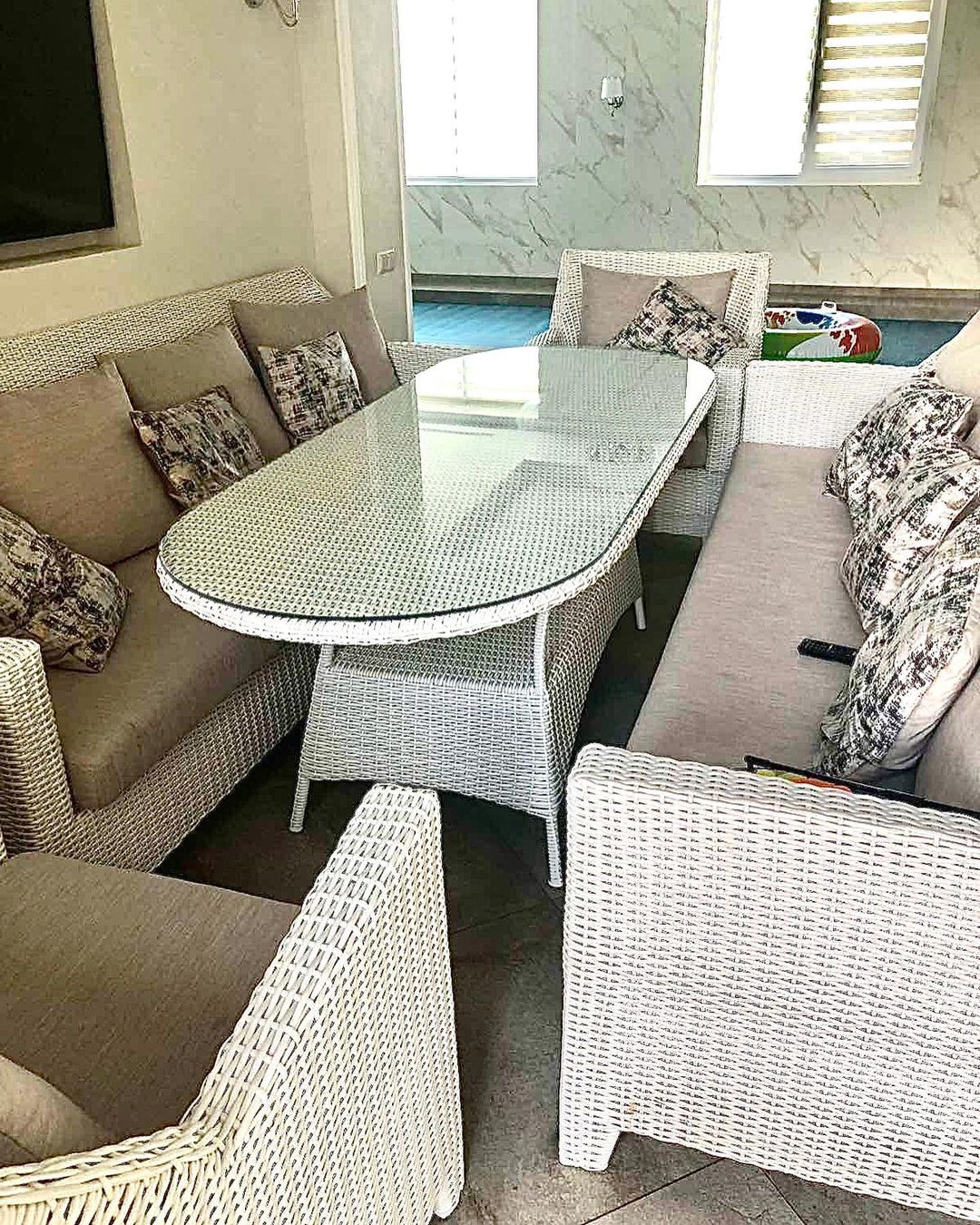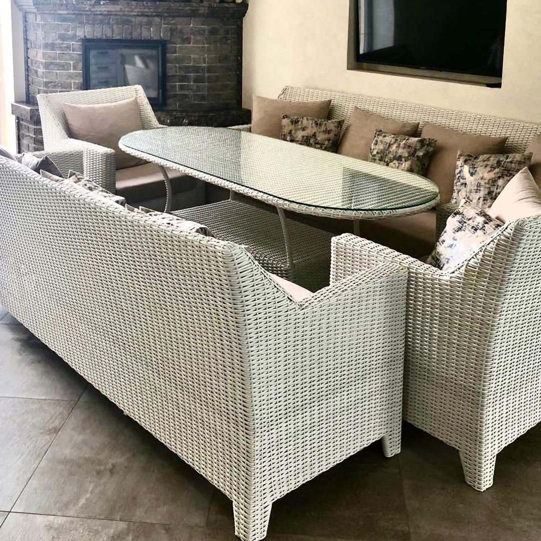 Комплект LOFT на 8 персон включает в себя 2 кресла 58х70х92 см, 2 дивана 200х80х85 см и обеденный стол 180х90х75 см. К заказу принимаем любую комплектацию и размер. Возможно изменить цвет, текстуру искусственного ротанга и материал плетения.