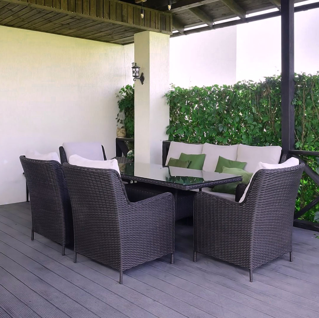 Комплект уличной мебели PROVENCE рассчитан на 4 персоны. Включает в себя 2 кресла 63х76х97 см, 2-хместный диван 130х76х97 сми журнальный/кофейный столик 90х90х50 см. К заказу принимаем любую комплектацию и размер. Возможно изменить цвет, текстуру искусственного ротанга и материал плетения.
