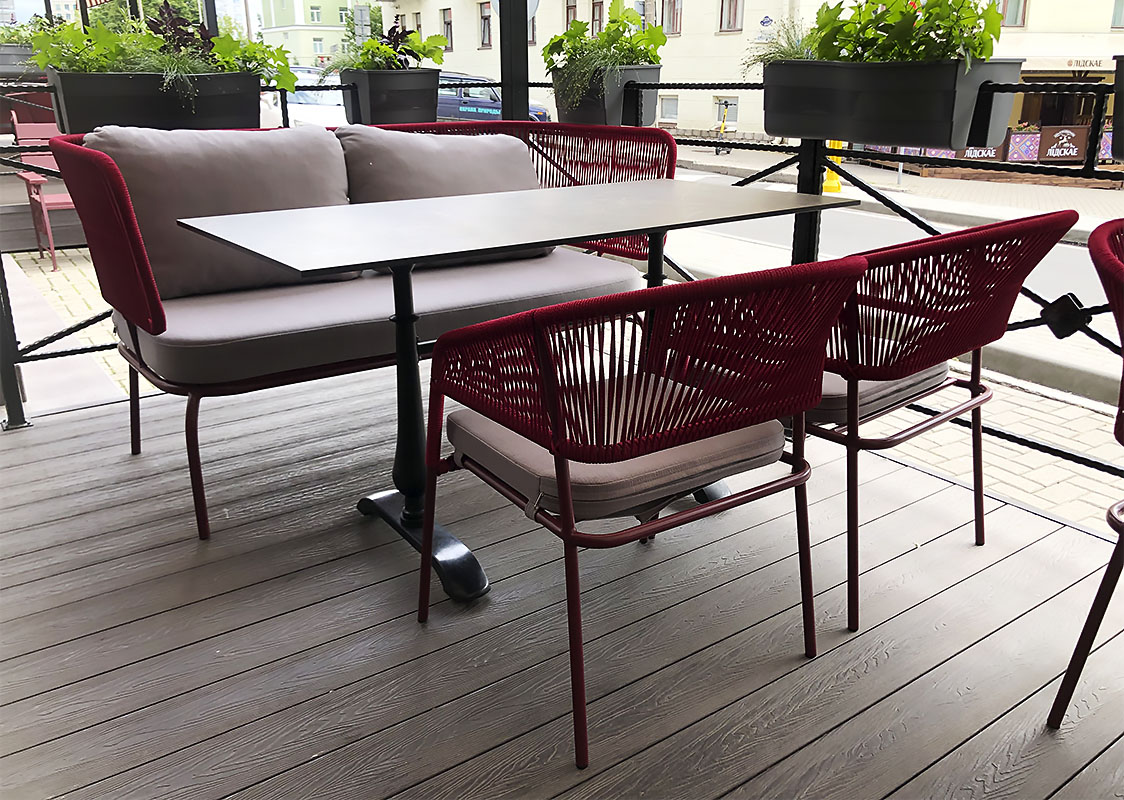 Комплект садовой мебели SICILIA, плетенный из синтетического шнура, включает в себя садовые диваны шхгхв, см: 160х88х75 и обеденные стулья шхгхв, см: 56х72х80. Материал каркаса - металл. Мягкие элементы входят в комплект и изготовлены из экологичной и водоотталкивающей ткани. К заказу принимаем любую комплектацию и размер. Возможно изменить цвет ткани, текстуру и материал плетения.
