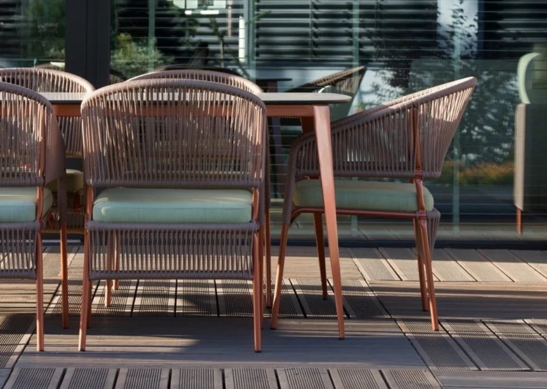 Комплект TERRACE на 8 персон включает в себя 8 плетеных стульев 56х72х80 см и металлический обеденный стол 240х110х75 см со столешницей HPL. Данный комплект уличной мебели идеально подойдет на террасу, в беседку, на веранду или в лаунж зону, а так же для ресторана или кафе. Материал плетения - синтетический шнур. Каркас - тонкостенный металл. К заказу принимаем любую комплектацию и размер. Мягкие элементы входят в комплект. Возможно изменить цвет и текстуру материал плетения.