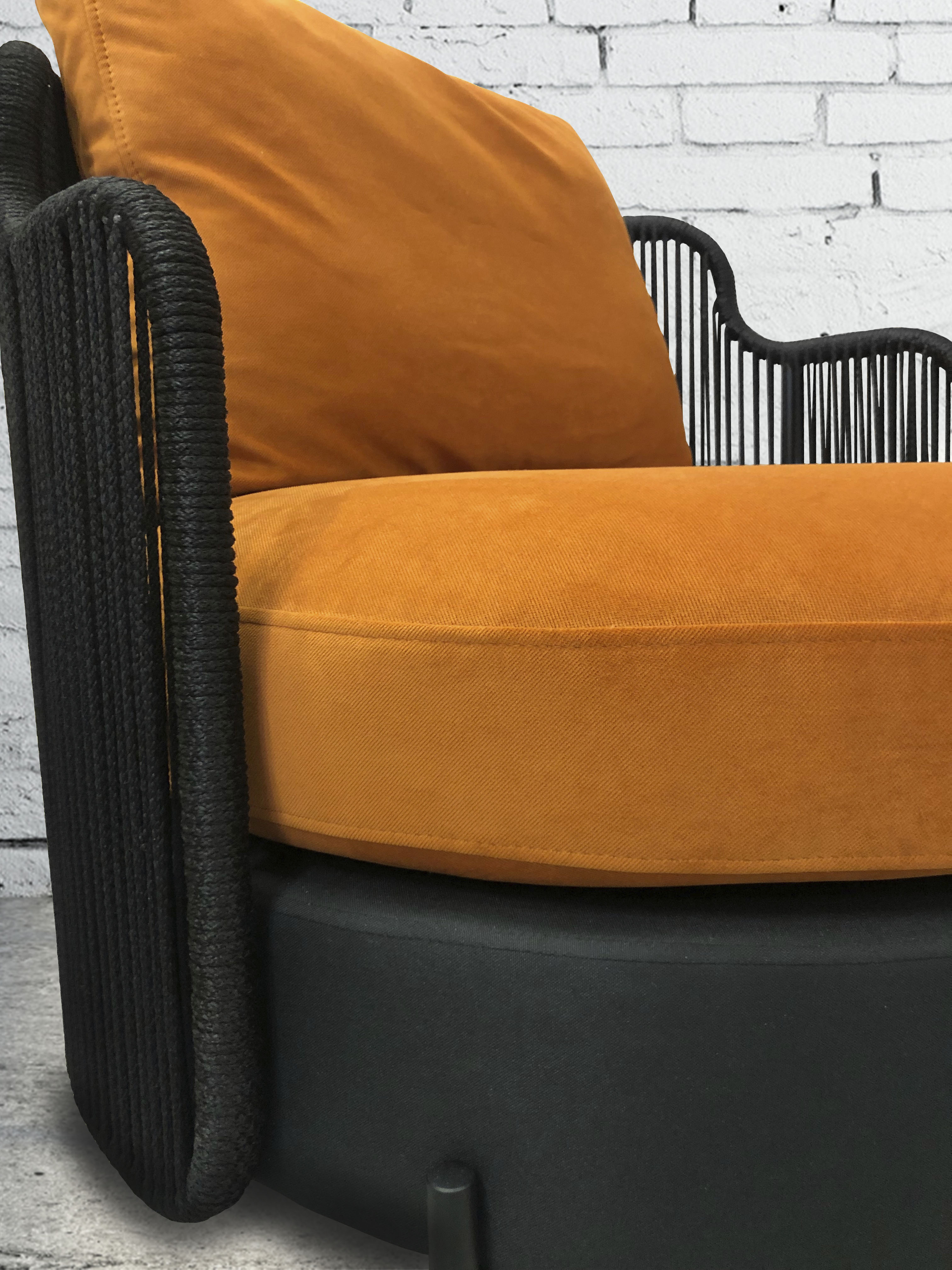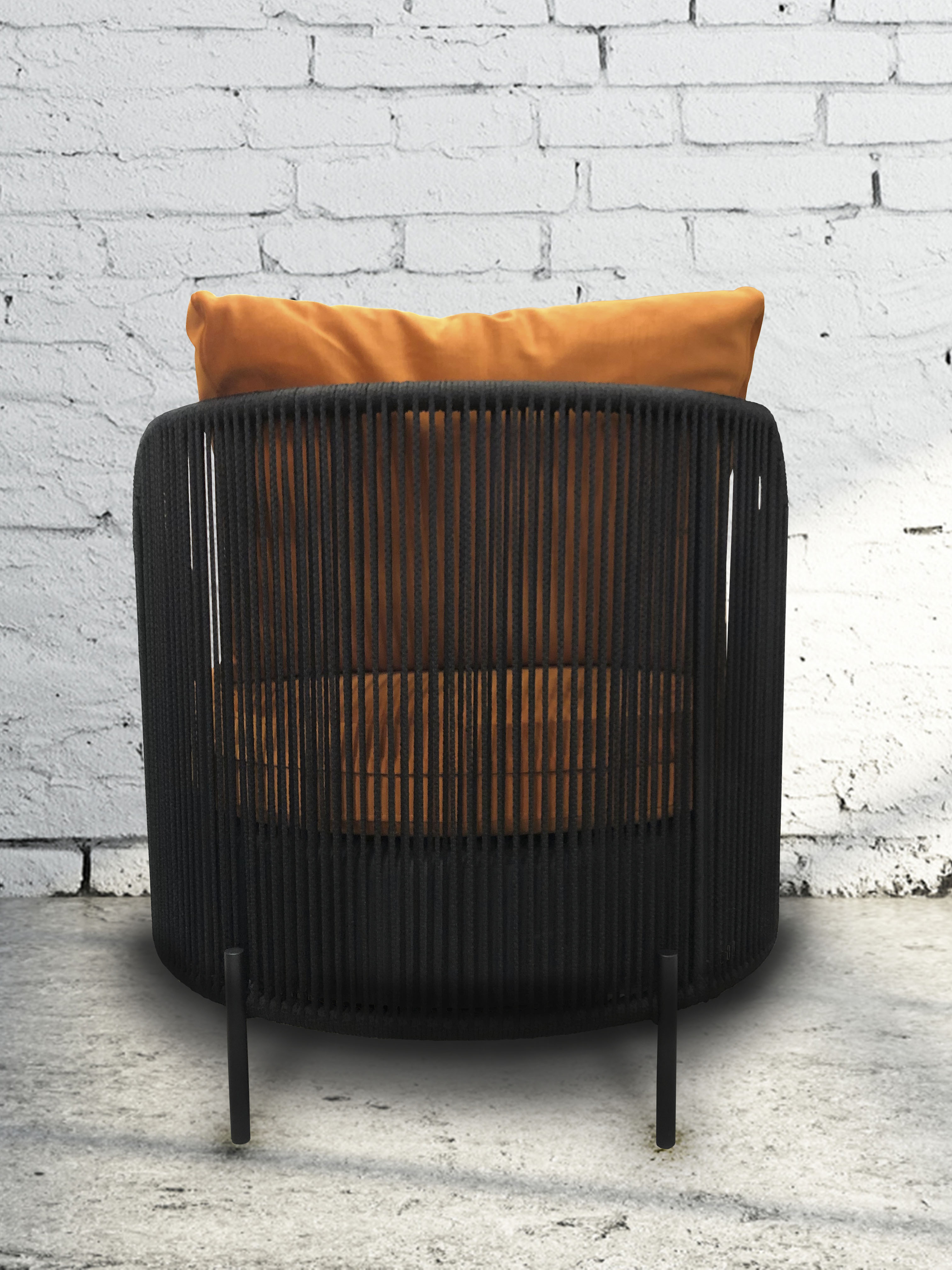 Удобное и элегантное кресло ROFF из джута с прямым вертикальным плетением, лучшее решение для террасы дома, ресторана, веранды, сада или или лаунж зоны. Внутреннее наполнение мягких элементов кресла изготовлено из комбинации блока независимых пружин и латексированного поролона. В основании каркаса использован брус и фанера с резинотканой лентой. Материал ножек - металл.