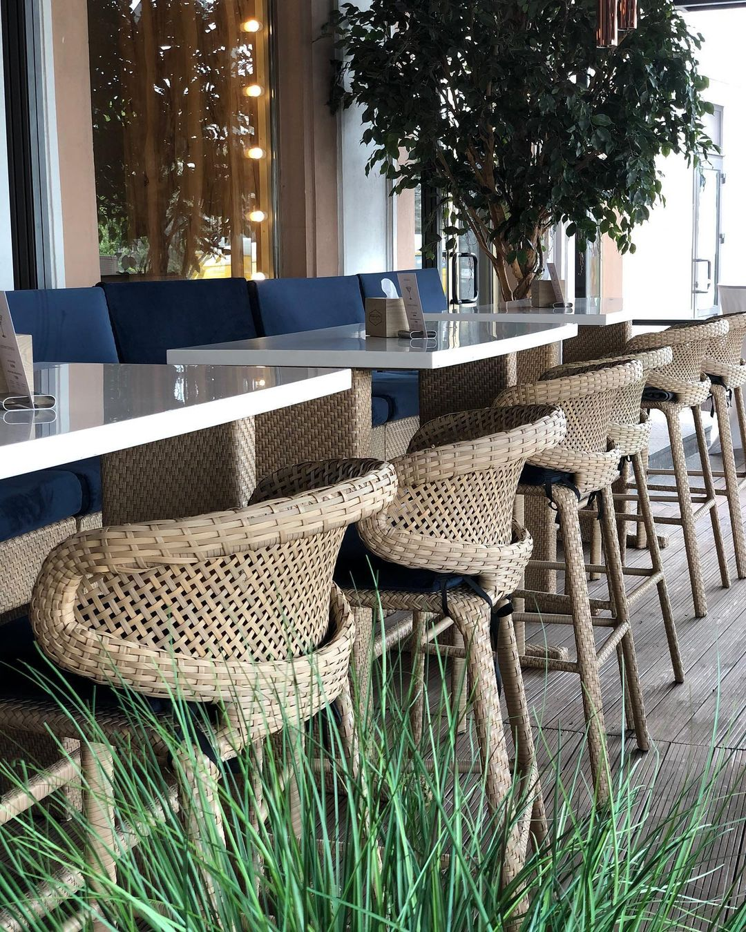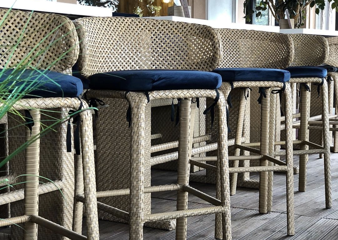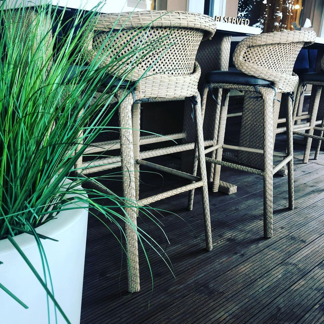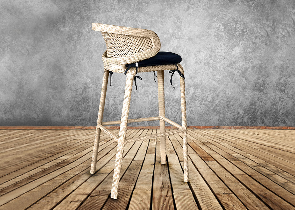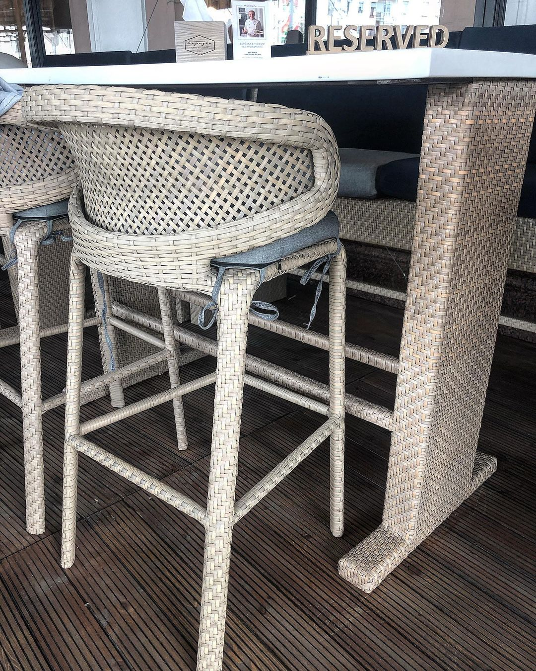 Садовый барный стул MARI из искусственного ротанга на металлическом каркасе, станет идеальным решением для террасы, балкона, кафе или ресторана. Высота посадки - 80 см. Мягкие элементы входят в комплект. Конструкция каркаса барного стула MARI обеспечивает устойчивость и позволяет ему выдерживать нагрузку до 150 кг. По желанию заказчика, размер, цвет и материал плетения можно изменить.
