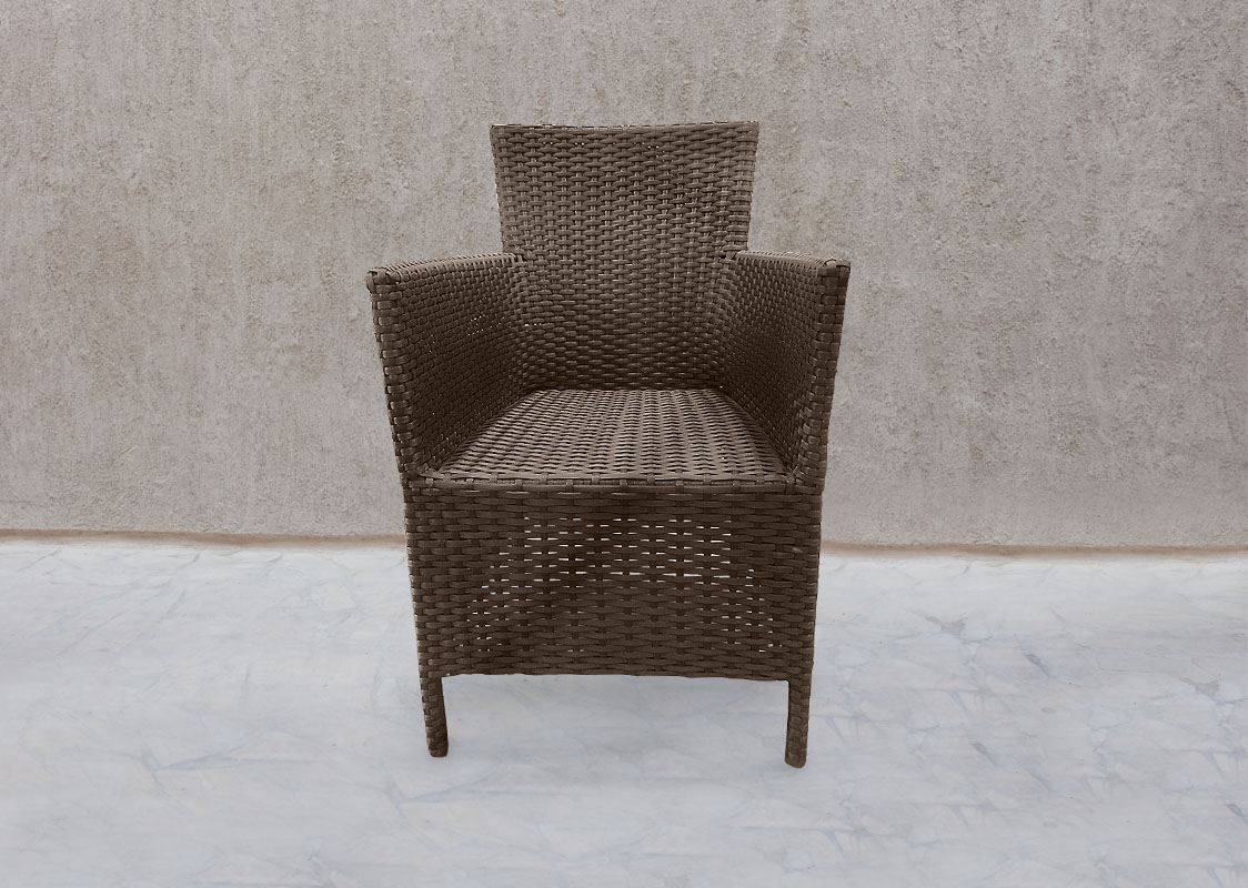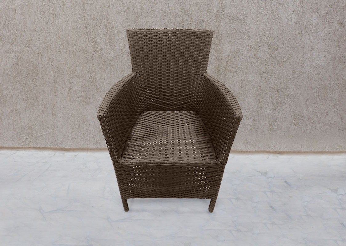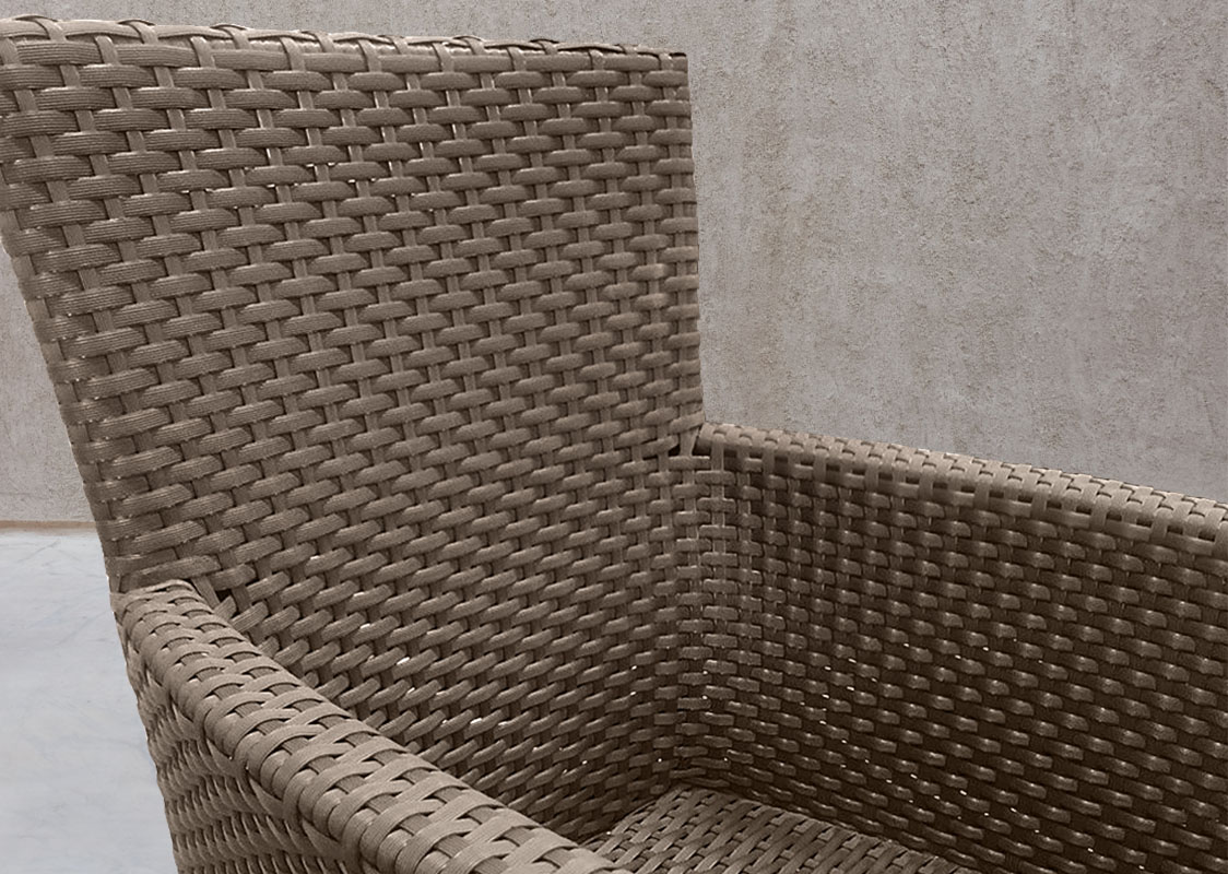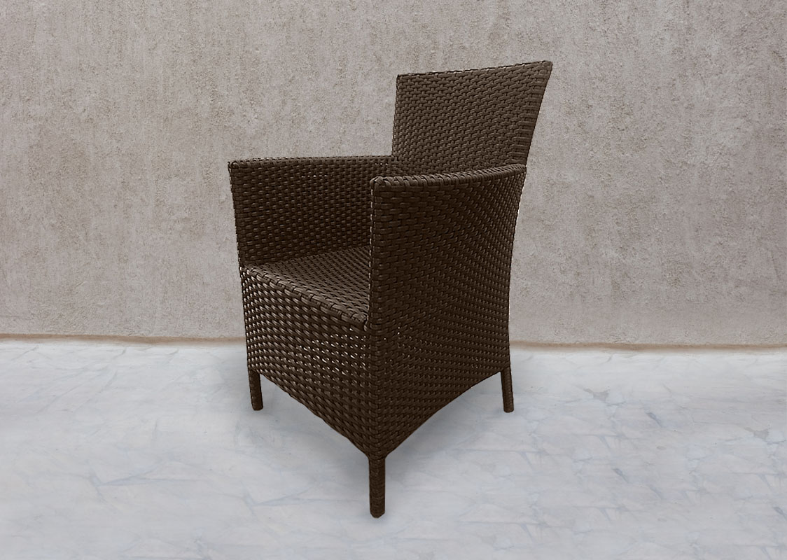 Садовое кресло BEND из искусственного ротанга на металлическом каркасе, с подлокотниками,  идеально дополнит любую обеденную группу на террасе  дома, ресторана бара или кафе. Мягкие элементы входят в комплект. По желанию заказчика, размер, цвет и материал плетения можно изменить.