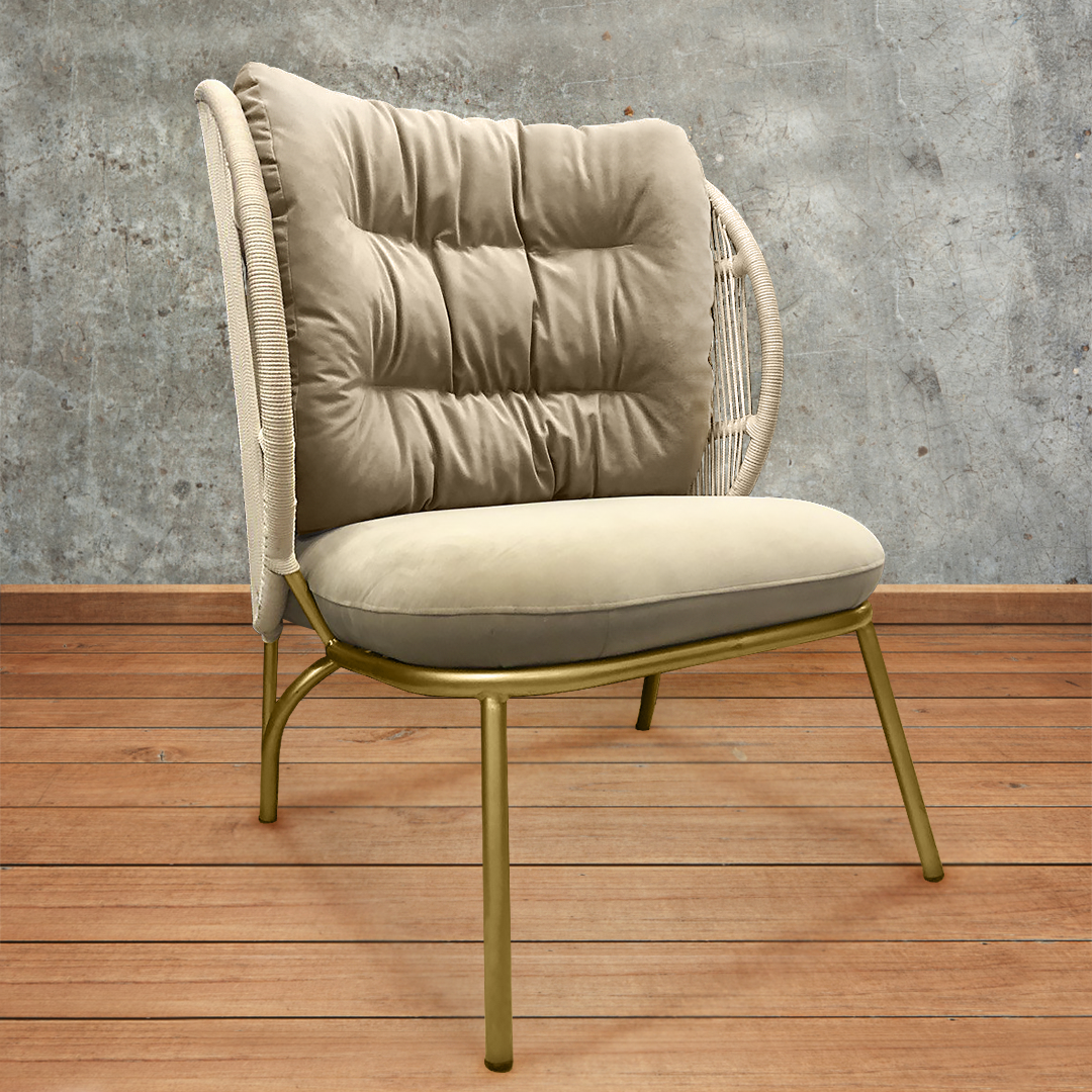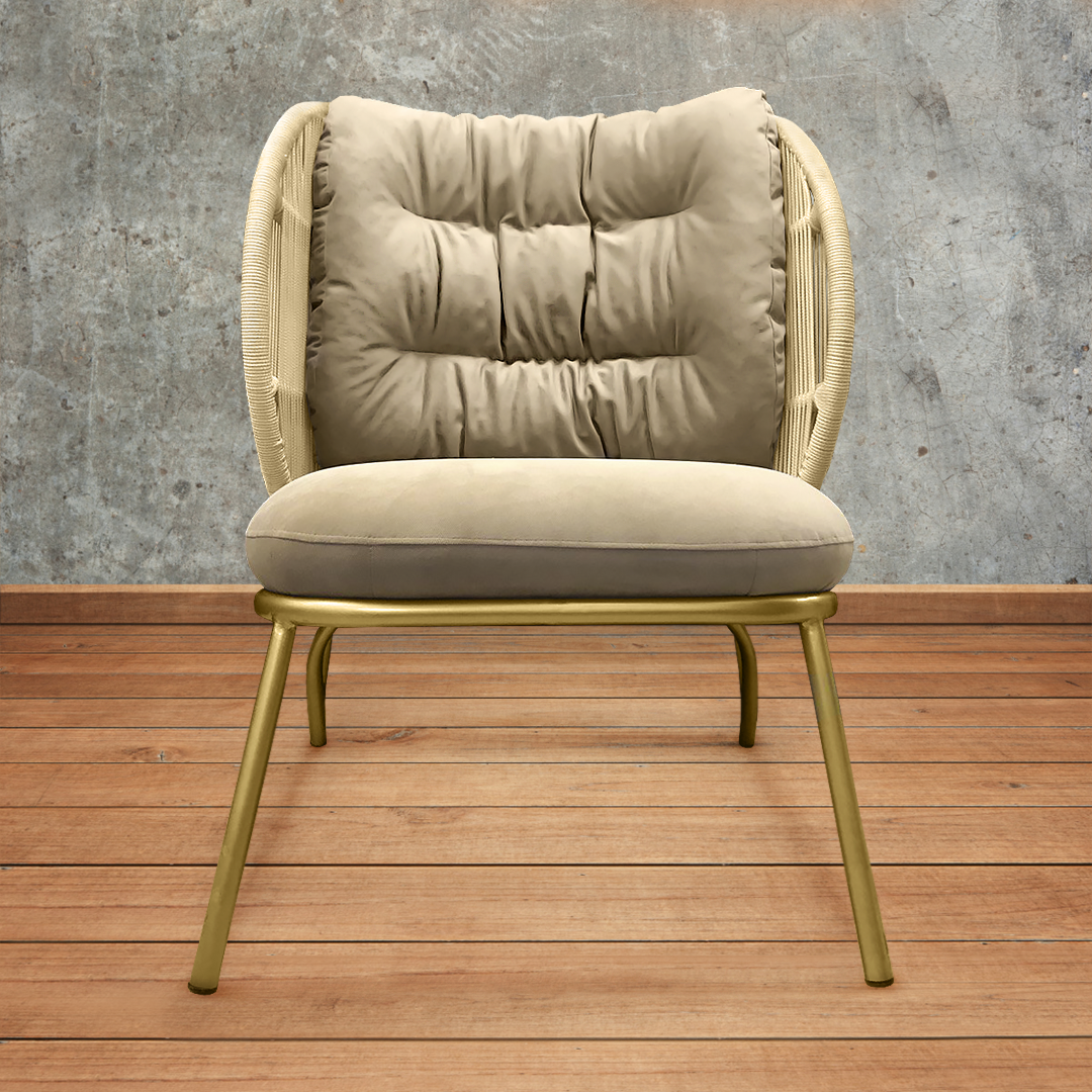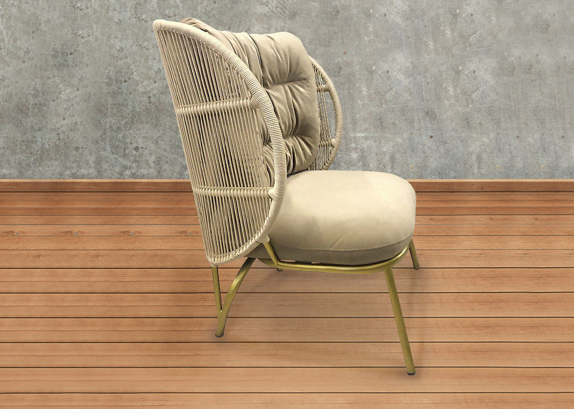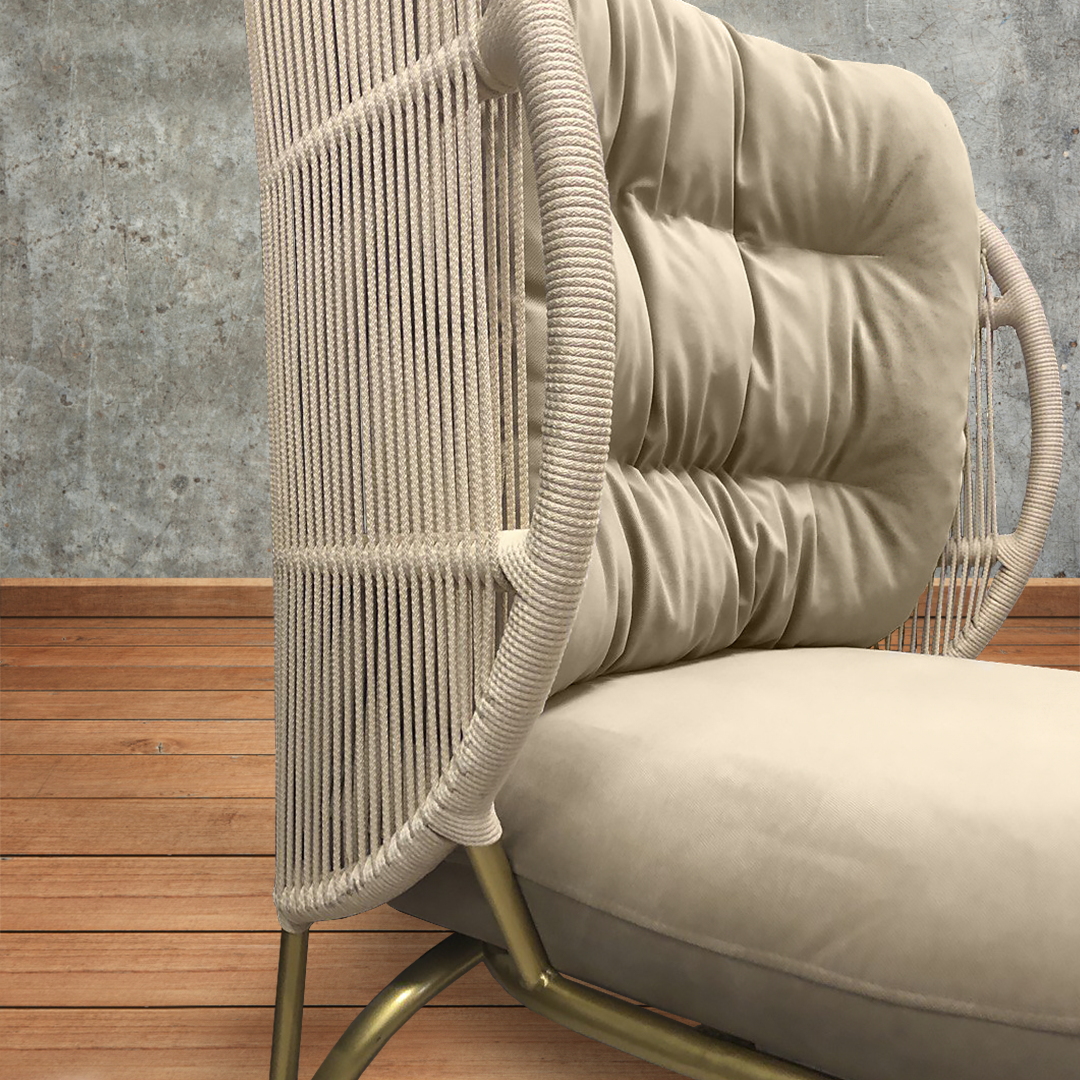 Удобное и элегантное кресло коллекции CELL из синтетического шнура с прямым вертикальным плетением, подойдет для террасы дома, веранды, сада, ресторана или лаунж зоны. Каркас плетеного кресла  изготовлен из окрашенной тонкостенной стальной трубы диаметром 16 мм. Внутреннее наполнение мягкого сиденья кресла изготовлено из нескольких слоев поролона различной степени плотности и мягкости. Подлокотники и спинка кресла оплетены синтетическим шнуром толщиной 6 мм. В качестве наполнителя подушек может использоваться полиэфирное волокно (файбертек) или синтетический пух.
