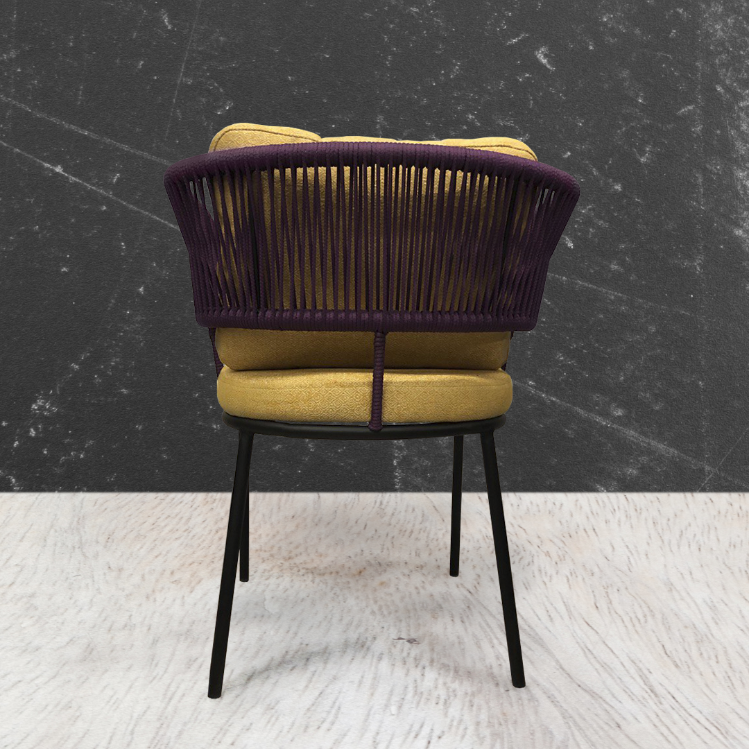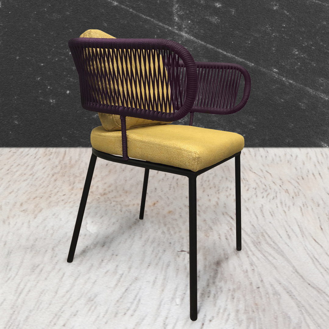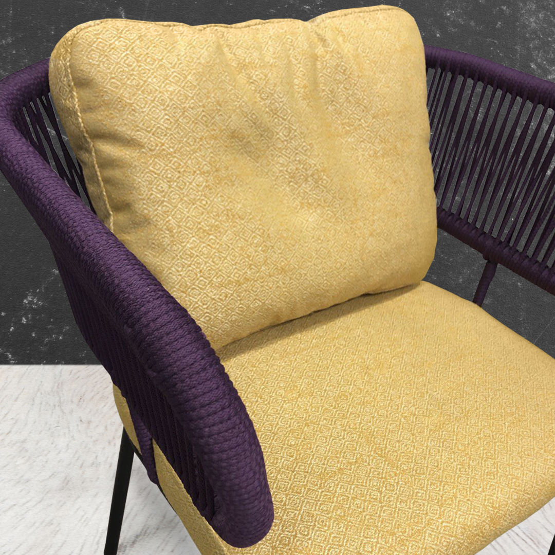 Садовый плетеный стул CELL из синтетического шнура, толщиной 6 мм, на металлическом каркасе, идеально дополнит любую обеденную группу. Высота посадки - 46 см. Мягкие элементы входят в комплект. По желанию заказчика, размер, цвет и материал плетения можно изменить.