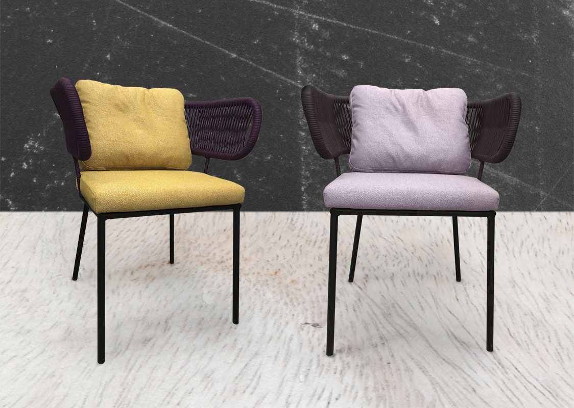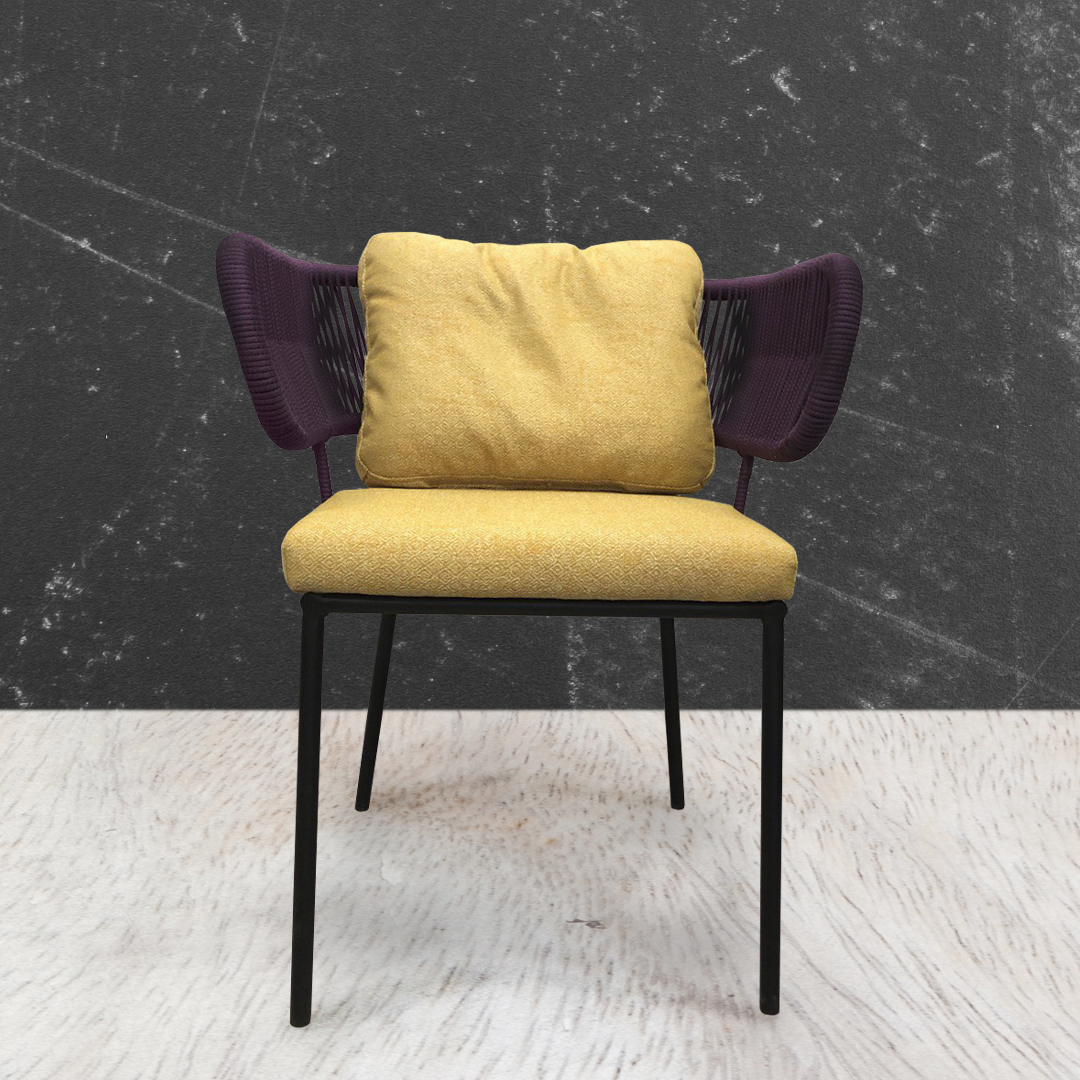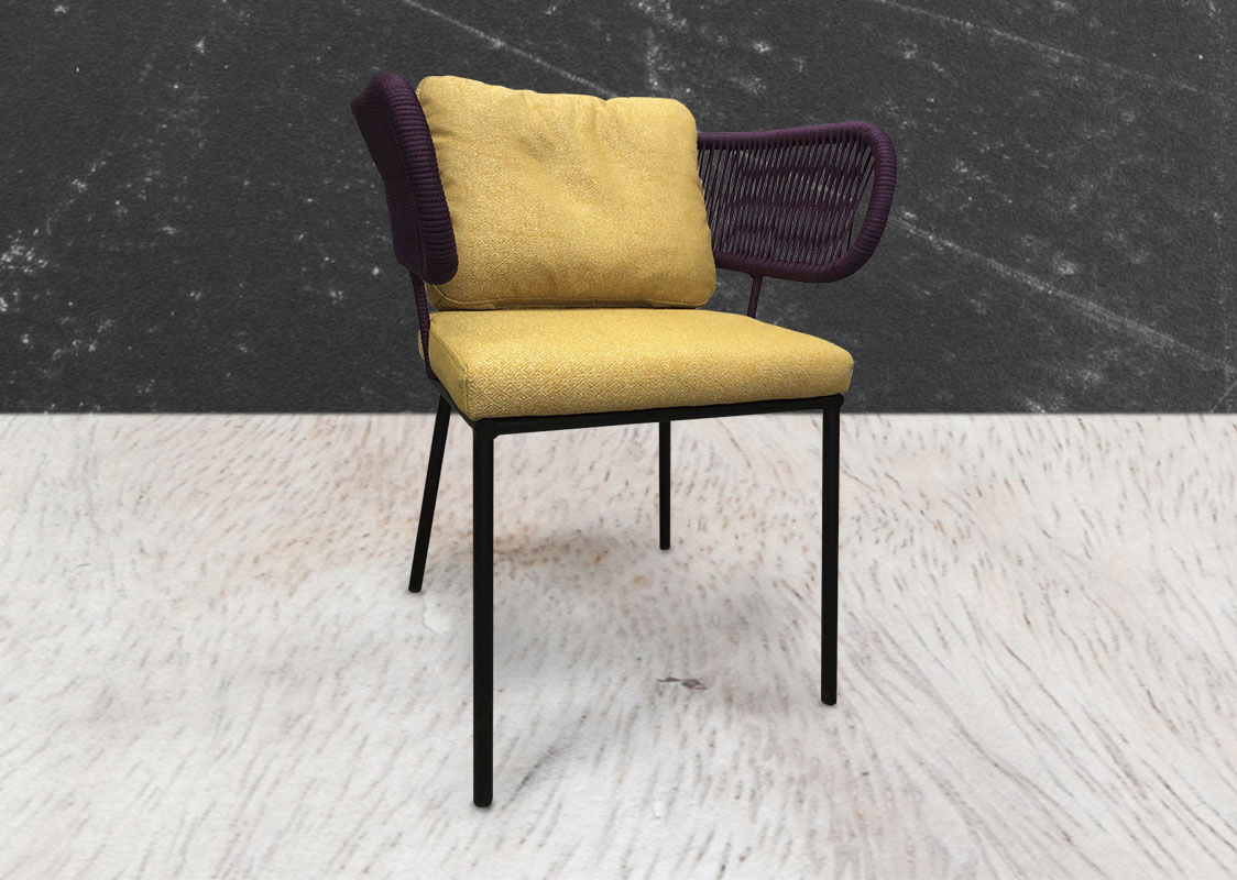 Садовый плетеный стул CELL из синтетического шнура, толщиной 6 мм, на металлическом каркасе, идеально дополнит любую обеденную группу. Высота посадки - 46 см. Мягкие элементы входят в комплект. По желанию заказчика, размер, цвет и материал плетения можно изменить.