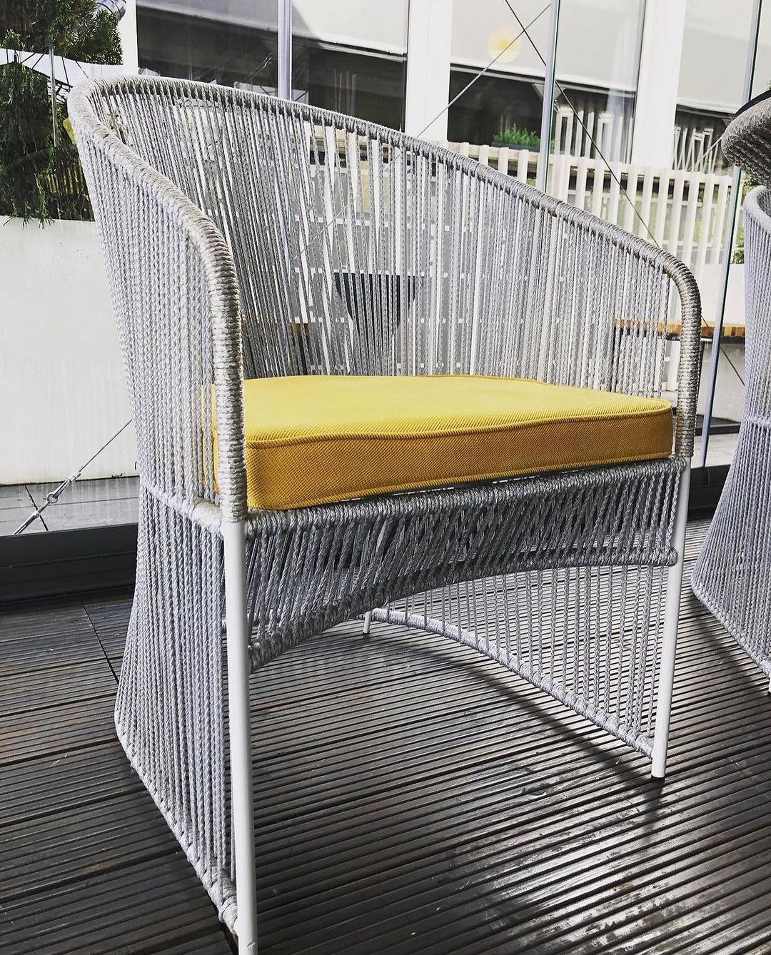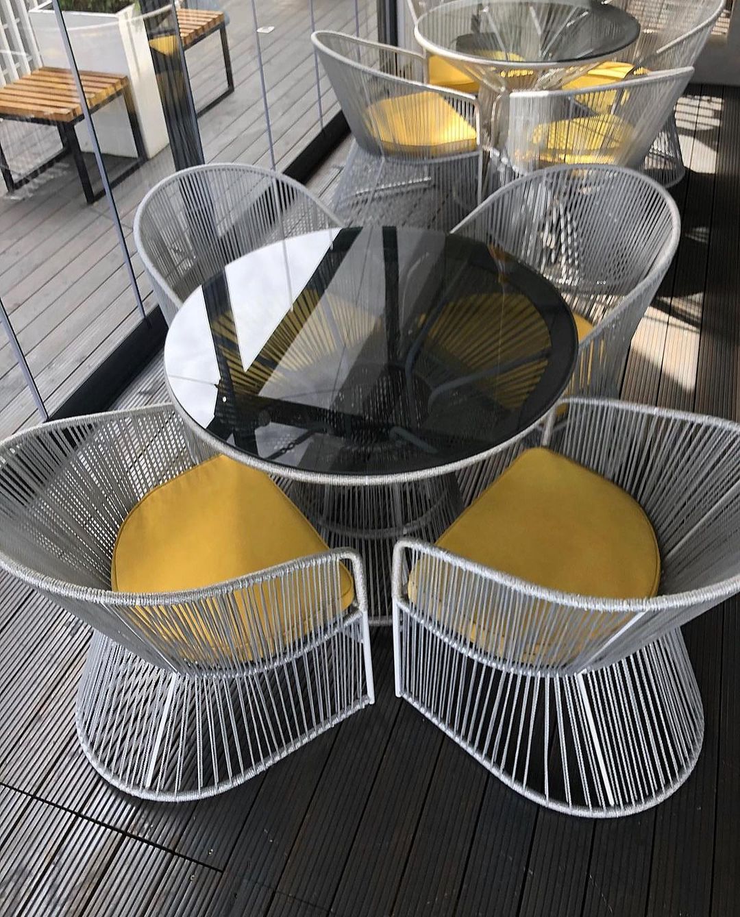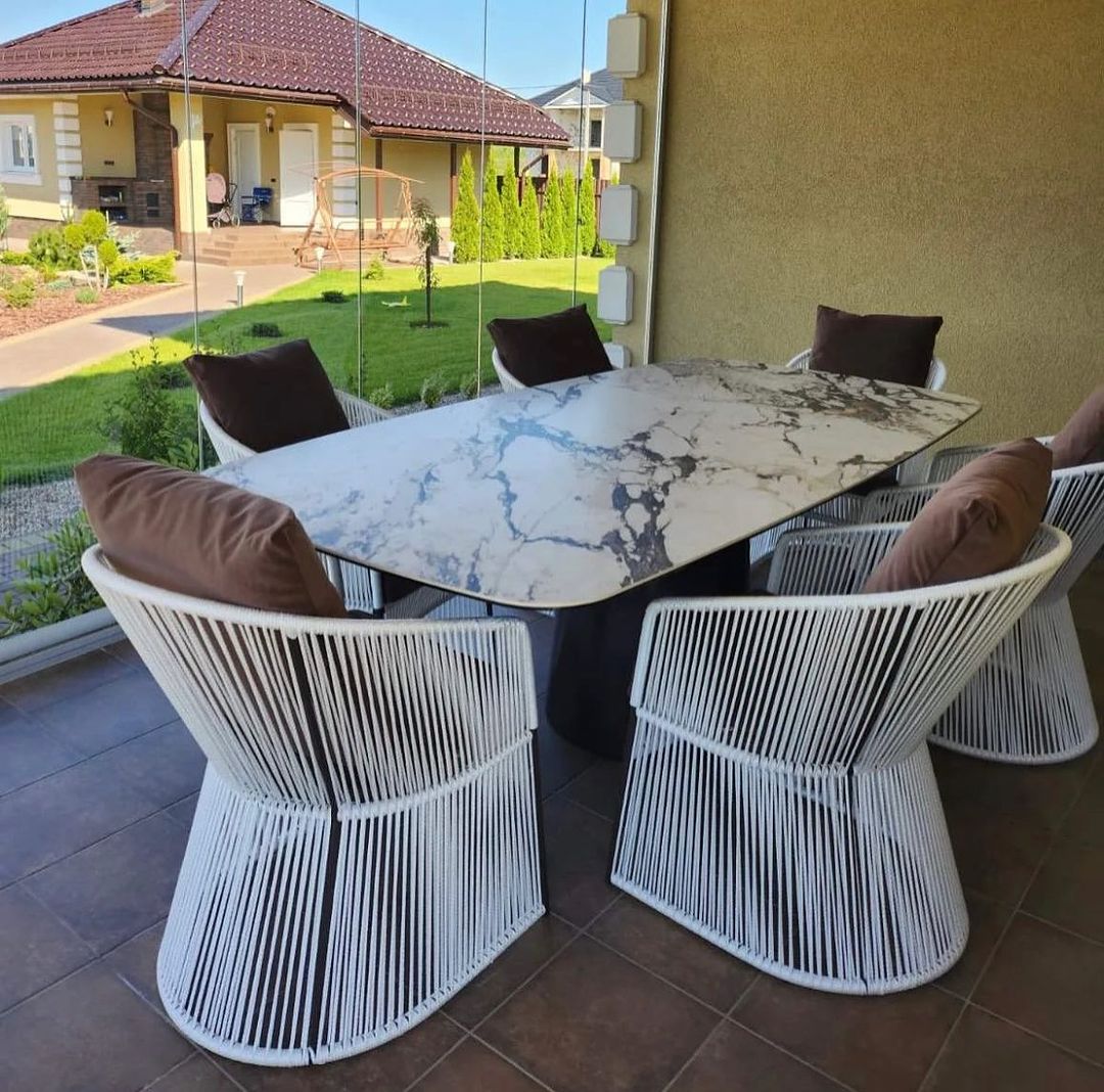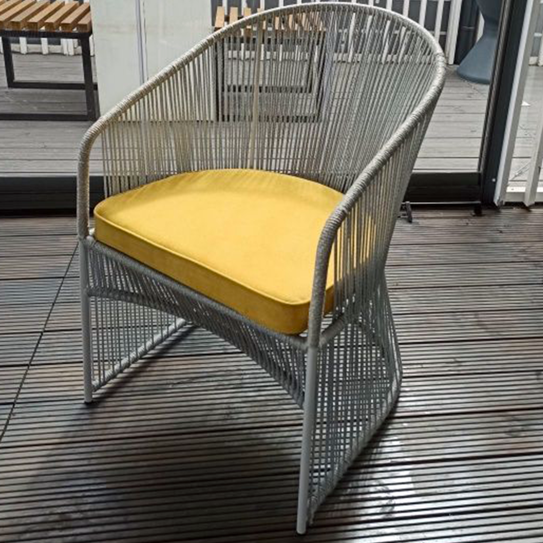 Садовый плетеный стул FONTAN из синтетического шнура, толщиной 6 мм, на металлическом каркасе, идеально дополнит любую обеденную группу. Высота посадки - 45 см. Мягкие элементы входят в комплект. По желанию заказчика, размер, цвет и материал плетения можно изменить.