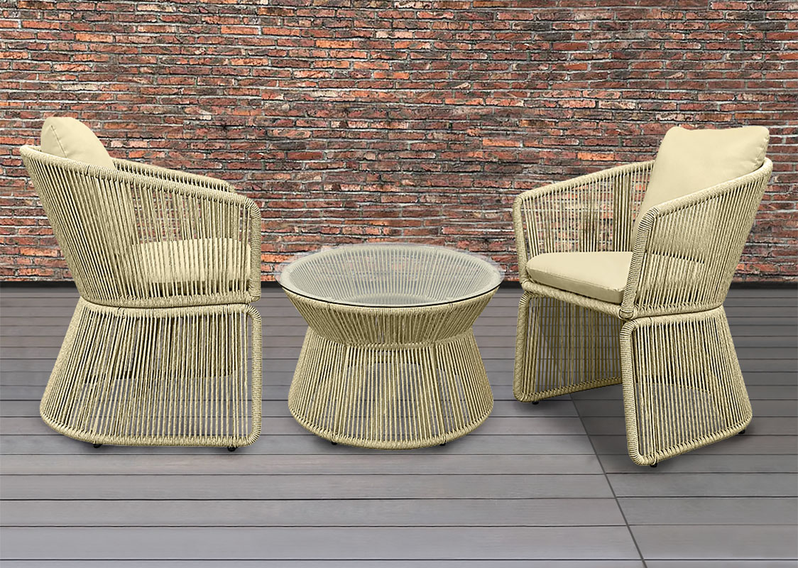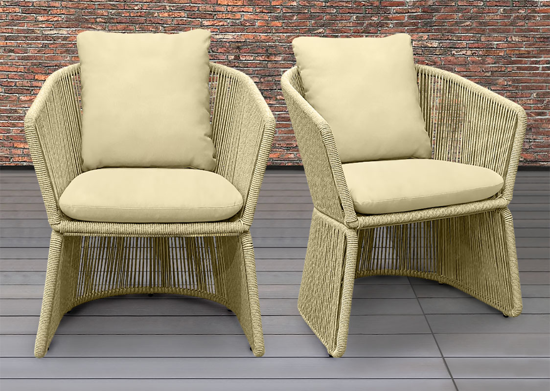 Садовый плетеный стул FONTAN Dual на металлическом каркасе, плетеный из синтетического шнура, толщиной 6 мм. Высота посадки - 45 см. Надёжный каркас выдерживает большие нагрузки. Материал мягких элементов: велюр. Мягкие элементы входят в комплект и выполнены из водоотталкивающего и экологичного материала. Внутреннее наполнение сиденья дивана изготовлено из нескольких слоев поролона различной степени плотности и мягкости. По желанию заказчика, размер, цвет и материал плетения можно изменить. Бесплатная доставка мебели в пределах 2-й МКАД. Доставка в регионы и РФ рассчитывается согласно тарифам транспортных компаний.