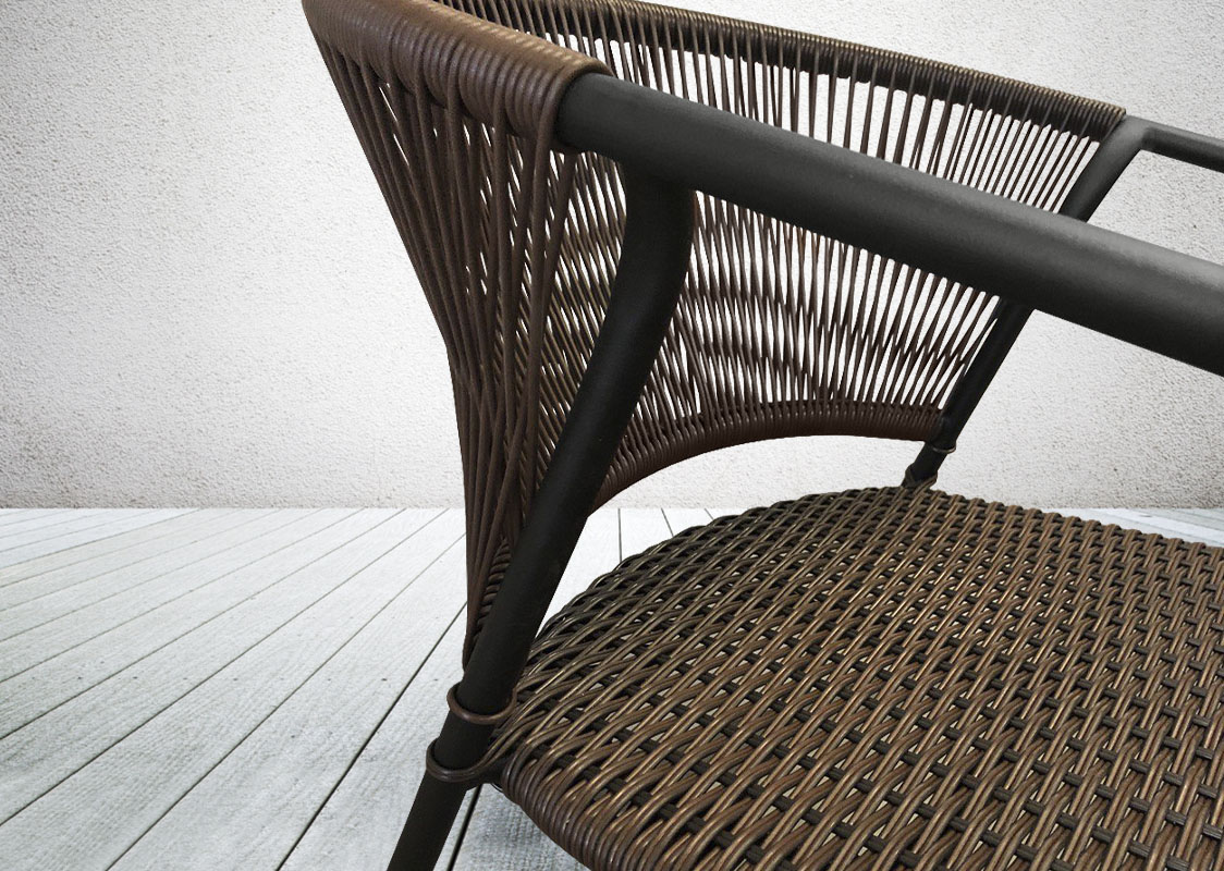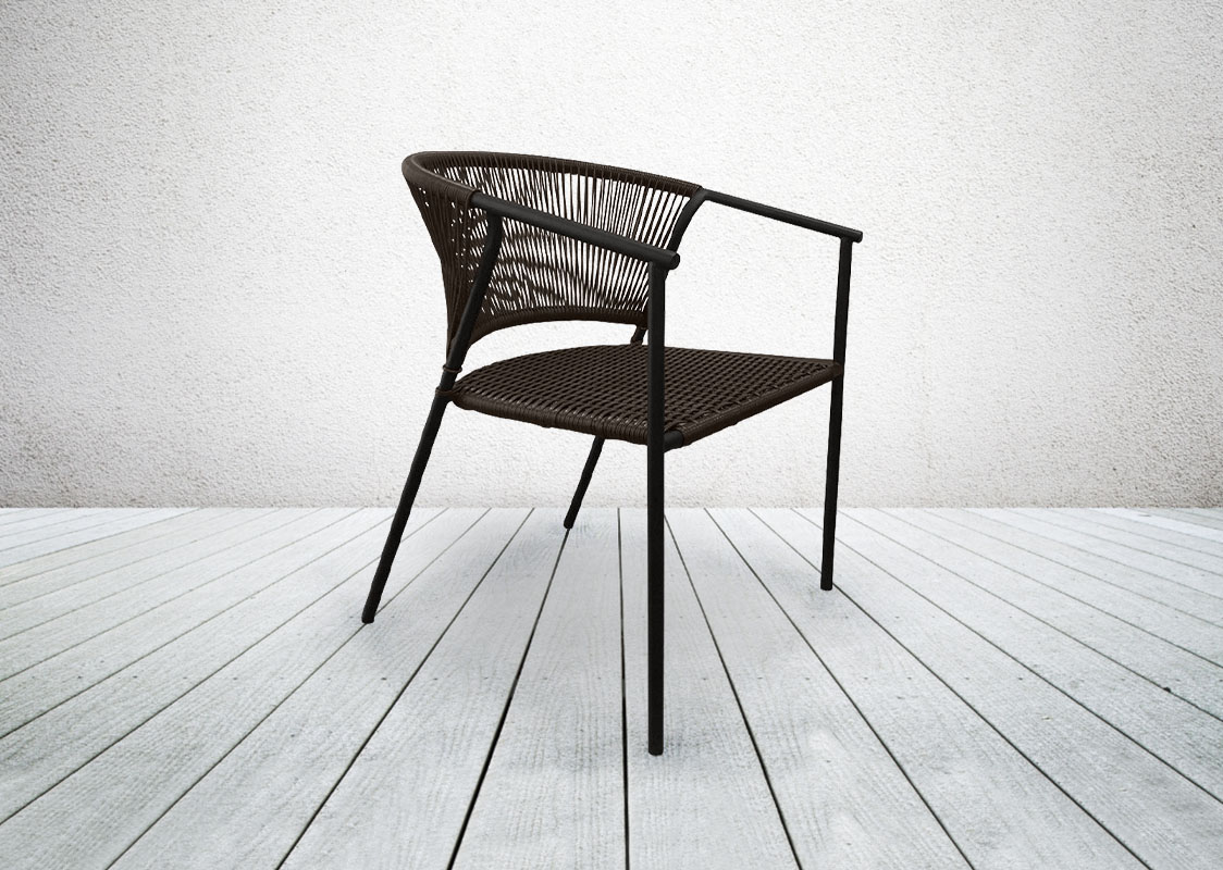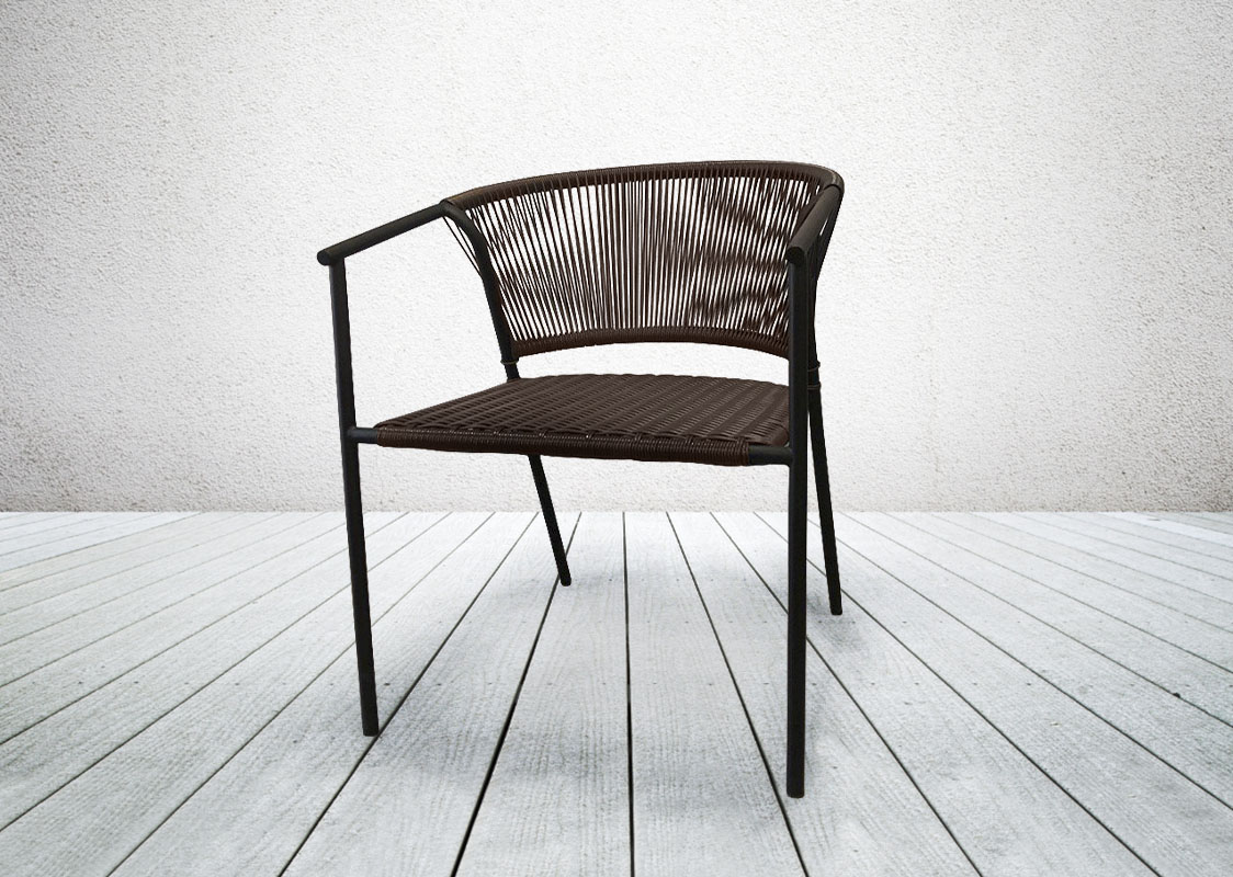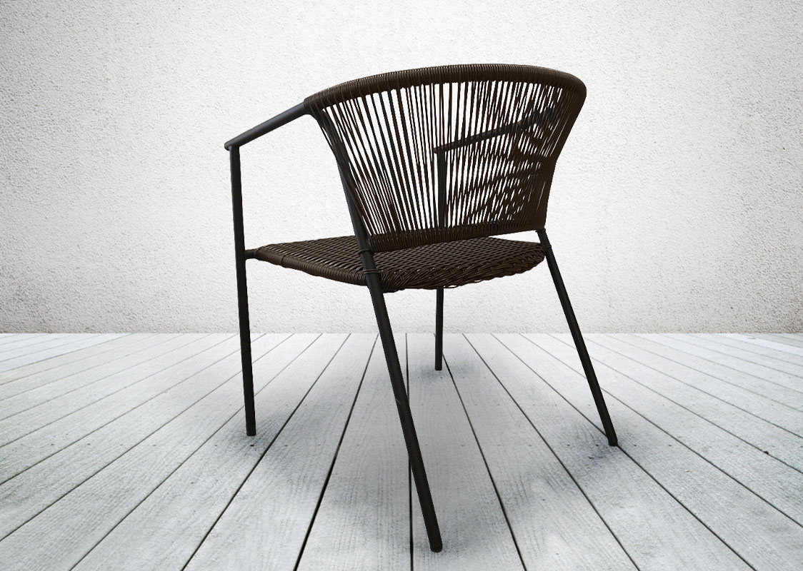 Садовый штабилируемый стул GARDEN Rope на металлическом каркасе, плетеный из искусственного ротанга идеально дополнит любую обеденную группу на террасе, кухне, в кафе или ресторане.  По желанию заказчика, размер, цвет и материал плетения  можно изменить. Стул возможно доукомплектовать мягкими элементами. Смотрите, также, обеденный стул GARDEN Rope из синтетического шнура.