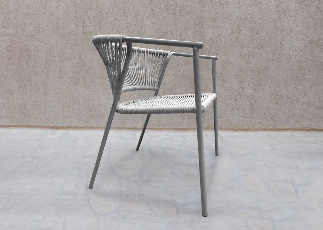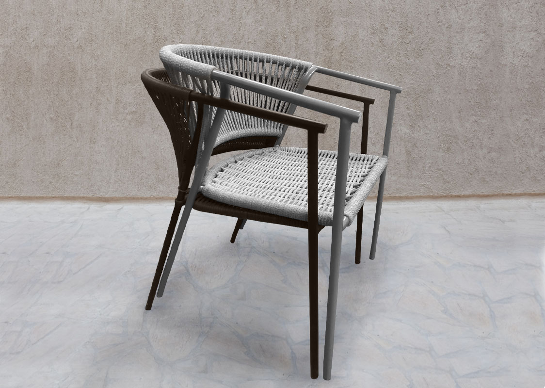 Садовый штабилируемый стул GARDEN Rope на металлическом каркасе, плетеный из синтетического шнура идеально дополнит любую обеденную группу на террасе, кухне, в кафе или ресторане.  По желанию заказчика, размер, цвет и материал плетения  можно изменить. Стул возможно доукомплектовать мягкими элементами. Смотрите, также, обеденный стул GARDEN из искусственного  ротанга.