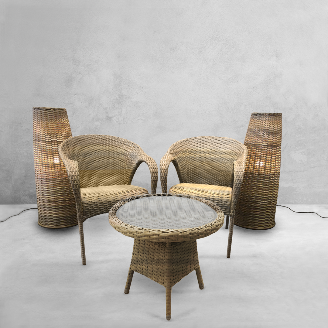 Плетеный кофейный столик PROVENCE на металлическом подстолье со стеклянной столешницей. Материал плетения - искусственный ротанг. Отличный вариант для беседки, террасы или веранды, кафе или ресторана. Подстолье изготовлено из профильной трубы 20 мм толщиной стенки 1.2 мм, с нанесенным на него защитным полимерным покрытием. В основании ножек подстолья предусмотрены пластиковые подпятники для защиты пола от царапин. По желанию заказчика каркас оплетается износостойким синтетическим шнуром (веревкой) толщиной 6 мм или нитью искусственного ротанга. Цвет полимерного покрытия подбирается в цвет веревки или нити полиротанга. Возможно изготовить стол под Ваши индивидуальные размеры.