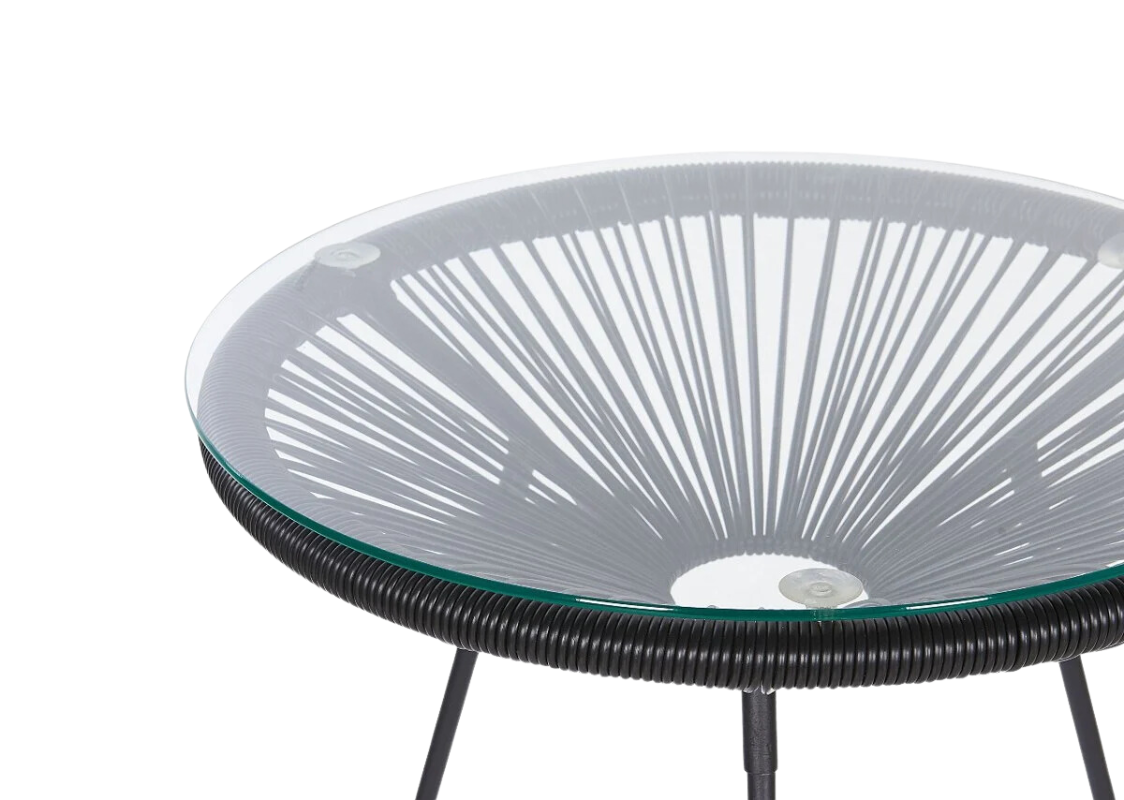Плетеный кофейный столик AKAPULKO d 45 см из искусственного ротанга, со стеклянной столешницей. Отлично дополнит любой комплект садовой мебели, подойдет на веранду, балкон, беседку, террасу или лаунж зону.