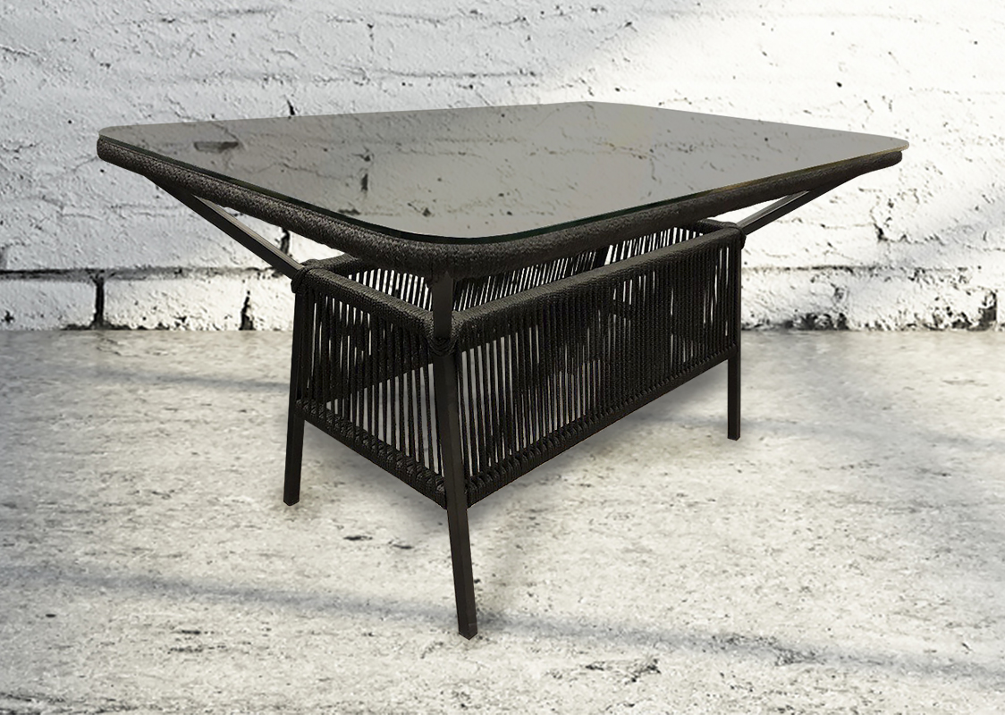 Садовый плетеный стол на металлическом подстолье со стеклянной столешницей. Материал плетения - искусственный ротанг или синтетический шнур (на выбор).