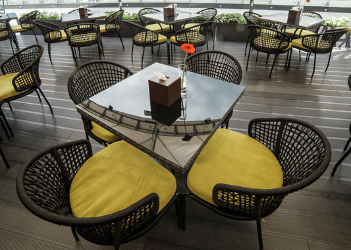 По желанию заказчика каркас оплетается износостойким синтетическим шнуром (веревкой) толщиной 6 мм или нитью искусственного ротанга. Цвет полимерного покрытия подбирается в цвет веревки или нити полиротанга. Столешница выполнена из бесцветного, тонированного или крашеного закаленного стекла, толщиной 8 мм, и, в зависимости от пожеланий покупателя, может укладываться на рамку подстолья или вкладываться внутрь него. Уличный стол Ember идеально дополнит любой комплект садовой мебели на террасе или балконе, в кафе или ресторане.