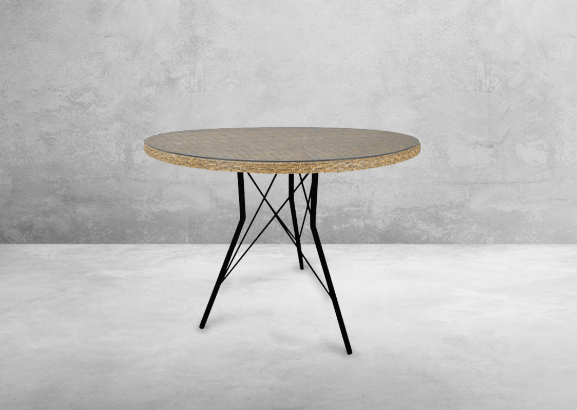 Уличный плетеный стол PETAL на металлическом подстолье со стеклянной столешницей. Материал плетения - искусственный ротанг или синтетический шнур (на выбор).