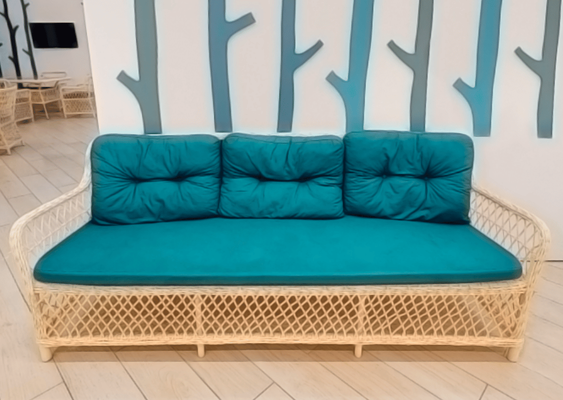 Модель дивана, представленная на странице, носит иллюстративный характер и является одним из ранее выполненных заказов наших клиентов. Все размеры, материал мягких элементов, цвет и фактура ротанга уточняются при оформлении заказа. Бесплатная доставка мебели в пределах 2-й МКАД. Доставка в регионы и РФ рассчитывается согласно тарифам транспортных компаний.