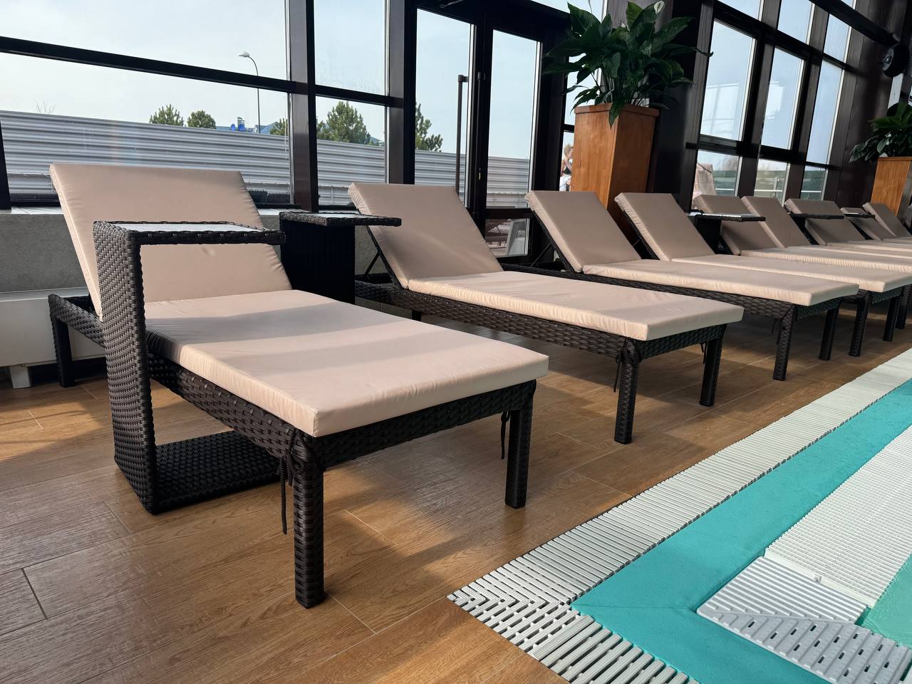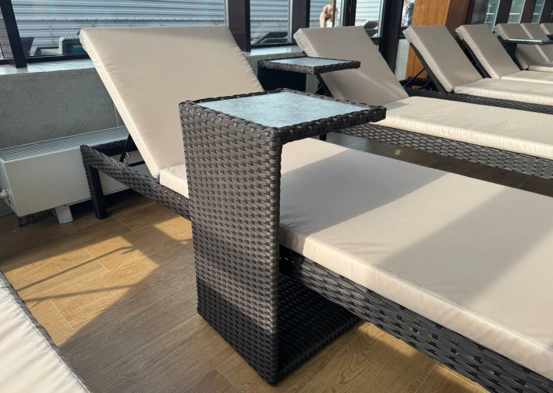 По желанию заказчика шезлонг может быть укомплектован мягким матрасом, при этом материал ткани и наполнитель мягких элементов подбирается индивидуально.