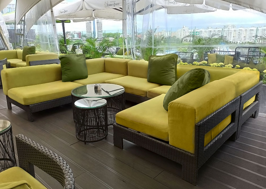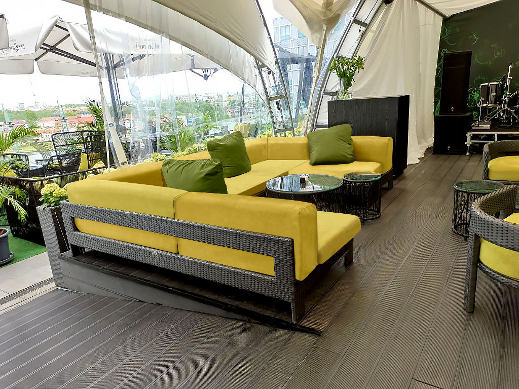 Данная модель представлена в интерьере на террасе ресторана EMBER. Надёжный каркас выдерживает большие нагрузки. Мягкие элементы входят в комплект и выполнены из экологичного и качественного материала. По желанию заказчика, размер, цвет и материал плетения можно изменить.