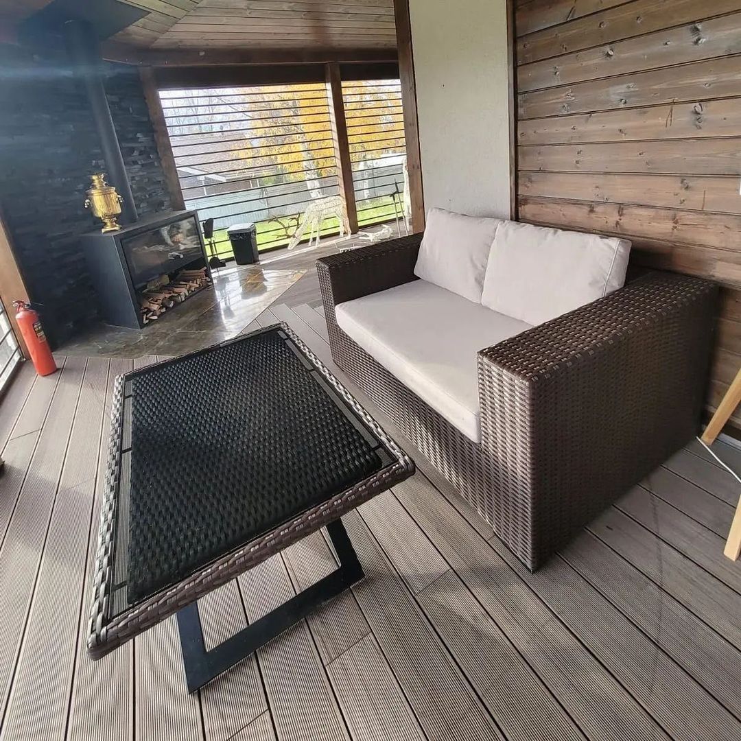 Удобный плетеный уличный диван Cuadro станет идеальным решением для Вашей террасы, беседки, сада или лаунж зоны. Надёжный каркас выдерживает большие нагрузки.  Мягкие элементы входят в комплект и выполнены из экологичного и качественного материала. По желанию заказчика, размер, цвет и материал плетения можно изменить. Толщина подлокотников и спинки дивана - 10 см.