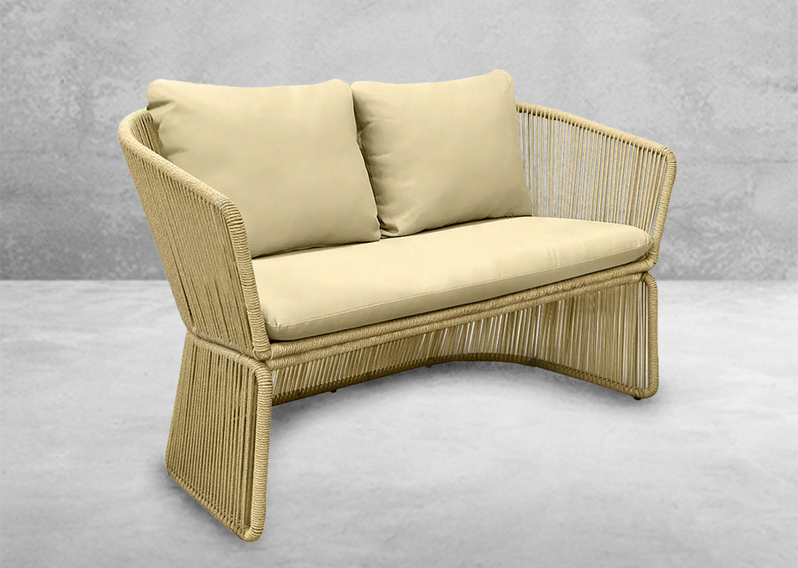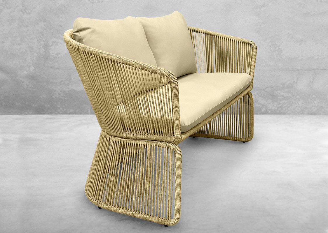 Удобный и компактный уличный плетеный диван FONTAN Dual на металлическом каркасе, оплетённым синтетическим шнуром с прямым вертикальным плетением. Модель уличного дивана подойдет для террасы дома, ресторана, веранды, сада или или лаунж зоны. Надёжный каркас выдерживает большие нагрузки. Материал мягких элементов: велюр. Мягкие элементы выполнены из водоотталкивающего и экологичного материала. Внутреннее наполнение сиденья дивана изготовлено из нескольких слоев поролона различной степени плотности и мягкости. Мягкие элементы входят в комплект. По желанию заказчика, размер, цвет и материал плетения можно изменить.