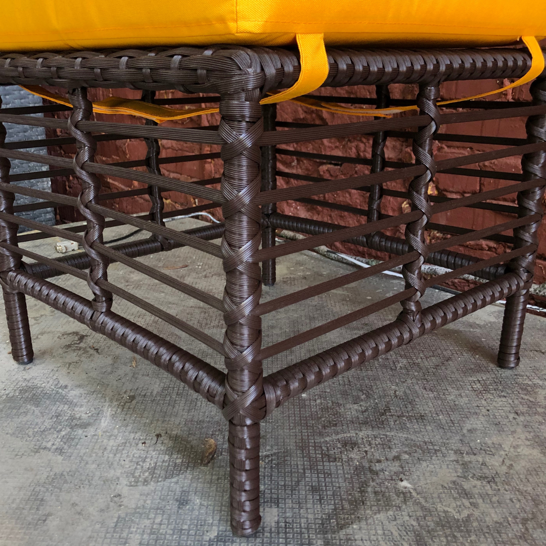 Уличный плетеный пуф коллекции BEI из искусственного ротанга - это удобный, компактный, функциональный и практичный элемент мебели, который может стать не только местом для хранения или сидения, но и кофейным столиком. Пуфы легко становятся в обеденную группу и гармонично смотрятся в экстерьере, как отдельный аксессуар. По желанию заказчика, размер, цвет и материал плетения можно изменить.